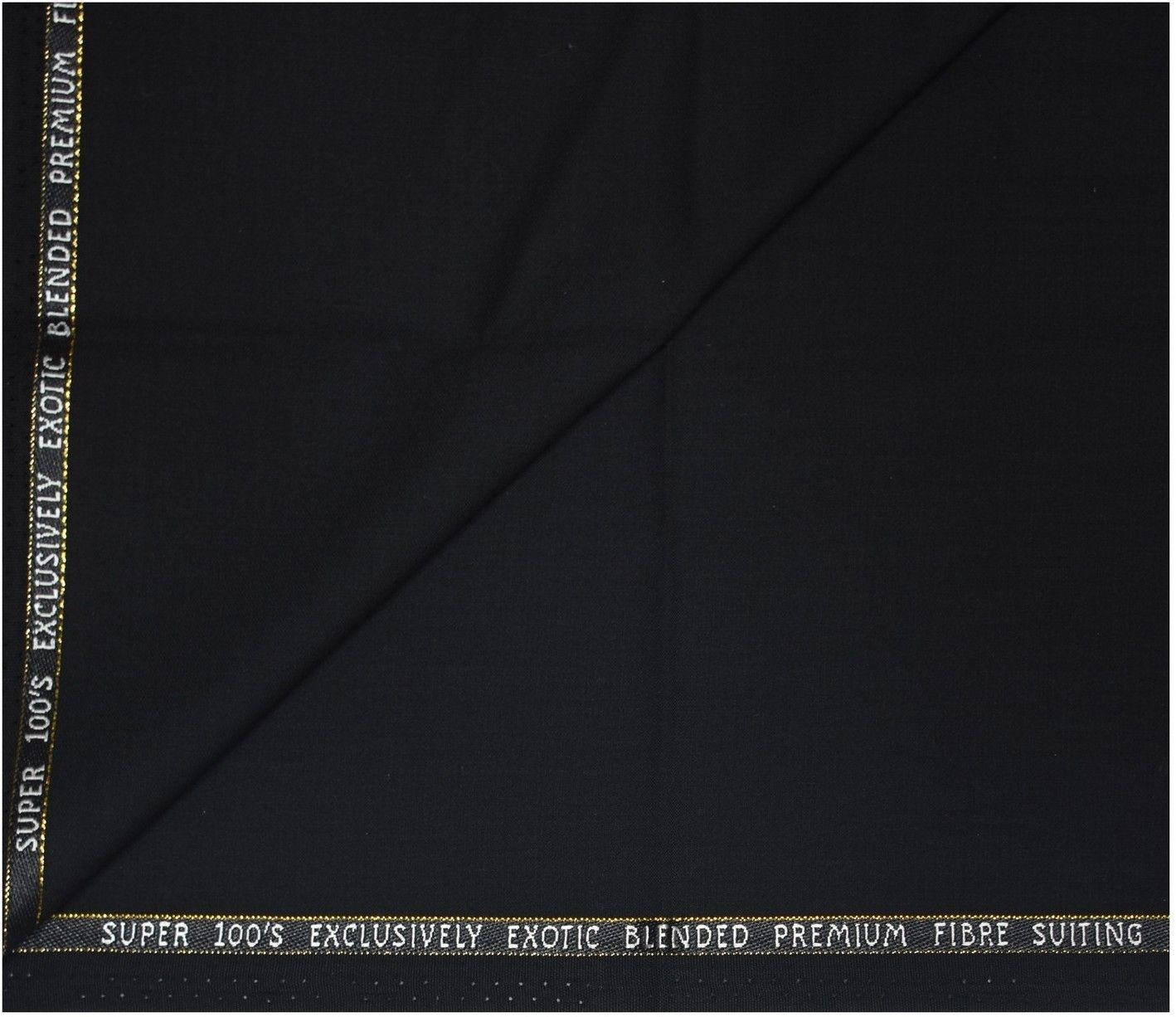 J.Hampstead Super 100's Wool Black Plain Unstitched Trouser Fabric of 1.25 Mts / VV7143