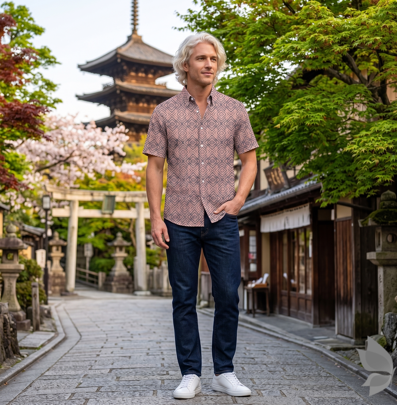 Raymond 100% Egyptian Giza Cotton (Premium Cotton) Pink (Peach) Printed Pattern Unstitched Shirt Fabric of 1.60 meters / VV2388AO