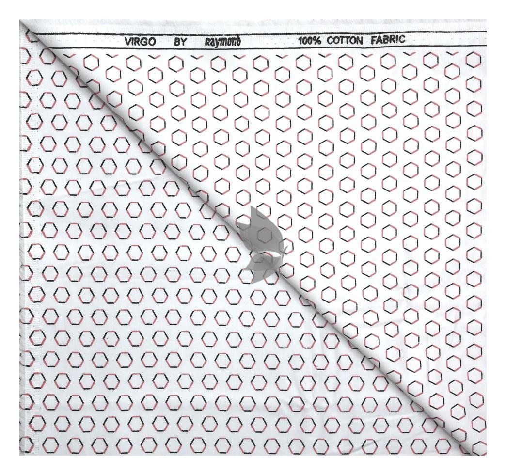 Raymond 100% Egyptian Giza Cotton (Premium Cotton) White Printed Pattern Unstitched Shirt Fabric of 1.60 meters / VV2388N