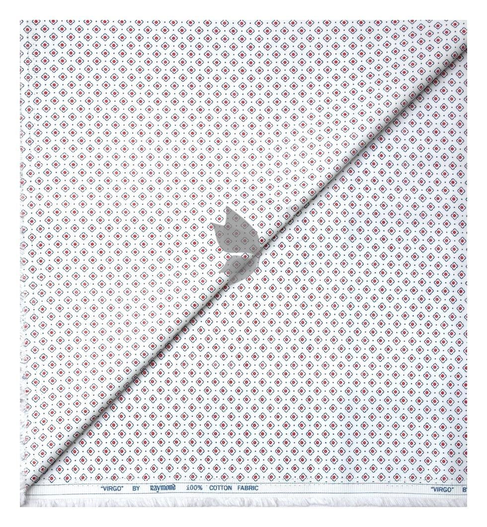 Raymond 100% Egyptian Giza Cotton (Premium Cotton) White Printed Pattern Unstitched Shirt Fabric of 1.60 meters / VV2388Y