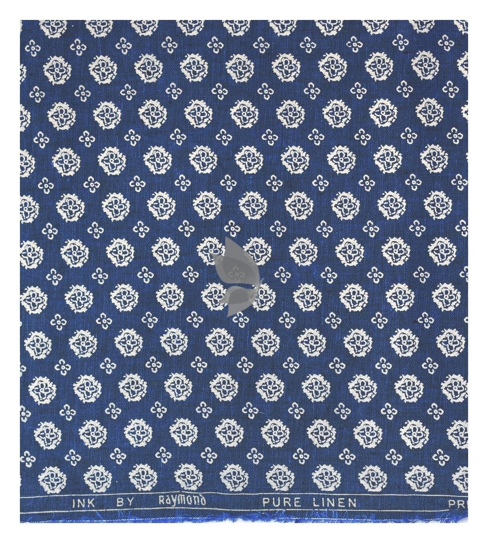 Raymond 100% Pure Linen Blue color Printed Unstitched Shirt Fabric of 1.6 meters / VV2389D