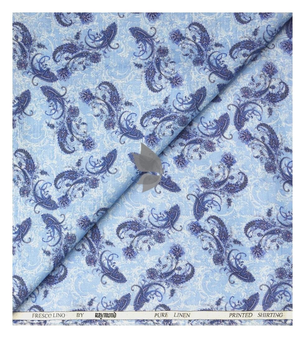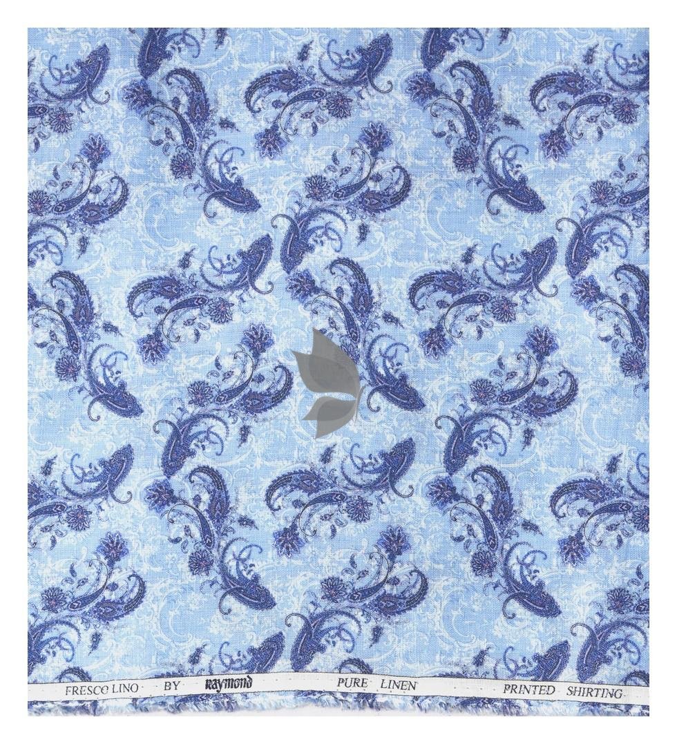 Raymond 100% Pure Linen Blue color Printed Unstitched Shirt Fabric of 1.6 meters / VV2389F
