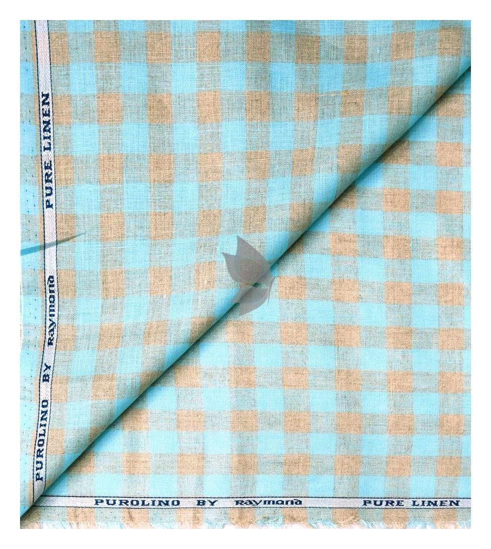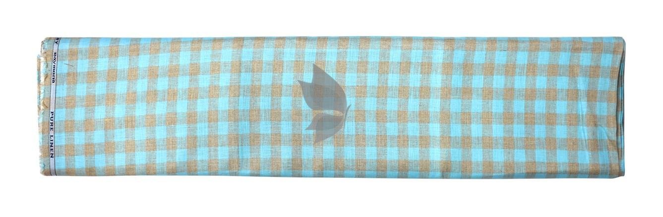 Raymond 100% Pure Linen Light Blue (Aqua) color Checkered Unstitched Shirt Fabric of 1.6 meters / VV2389X