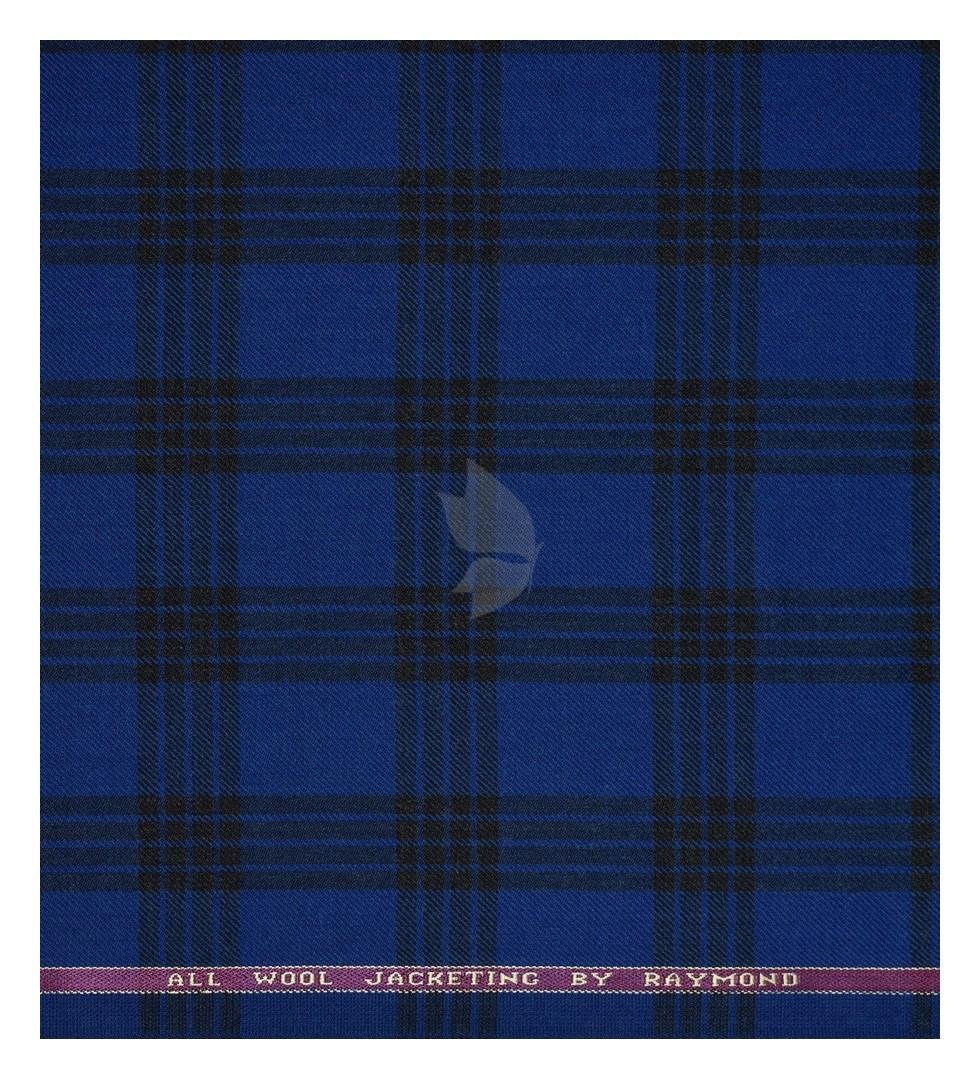 Raymond 100% Pure Wool (All Wool) Thick Royal Blue Color Checkered Unstitched Suit Fabric - 3 Mts / VV2052