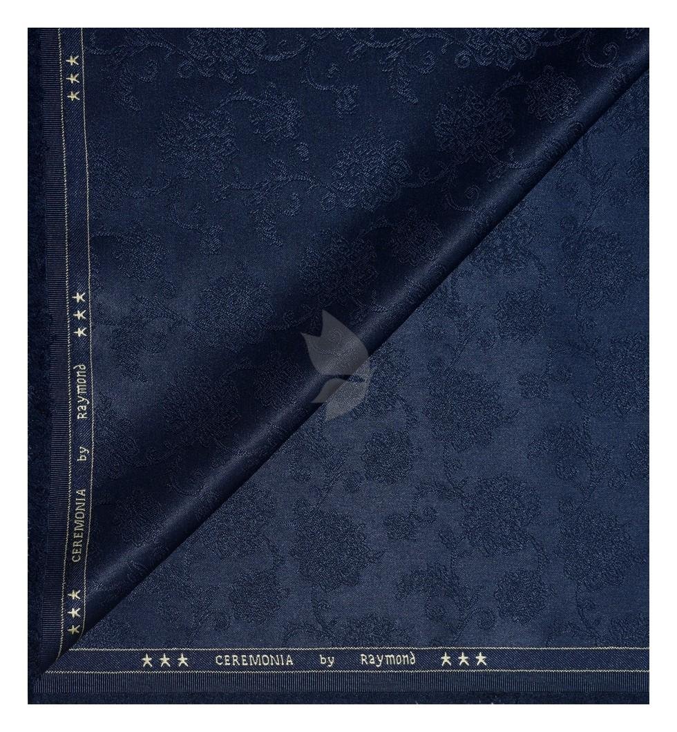Raymond "CEREMONIA" Collection Wool Blended Navy Blue with Jacquard and Floral design Unstitched Sherwani (Kurta) Fabric - 2.5 Mts / VV2138