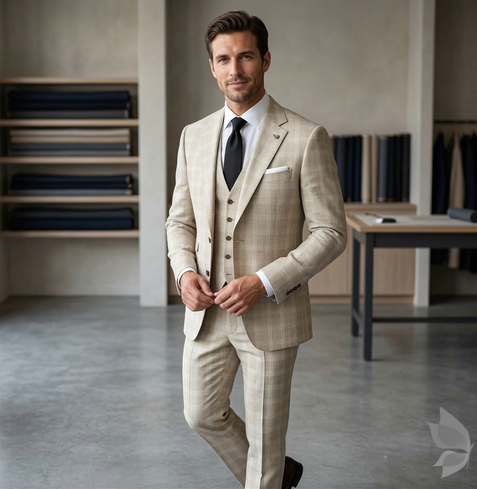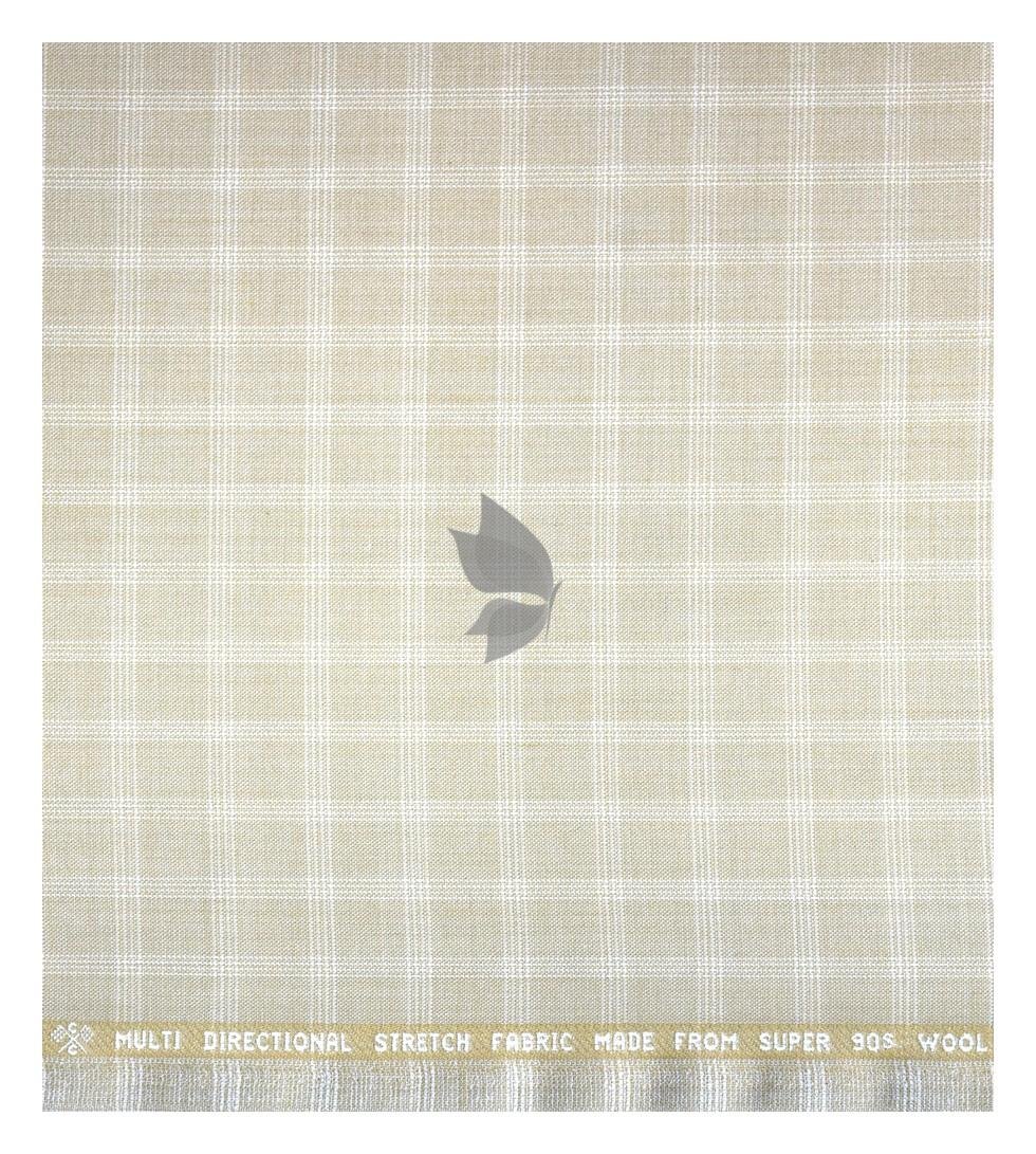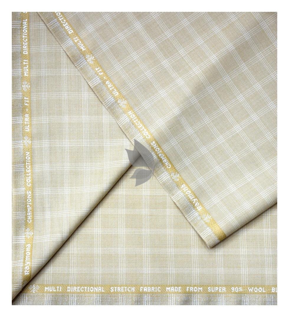 Raymond Champions Collection made from Super 90's wool with multi directional stretch fabric for ultra fit Beige colour checkered pattern unstitched suit fabric of 3.5 Mts / VV2688