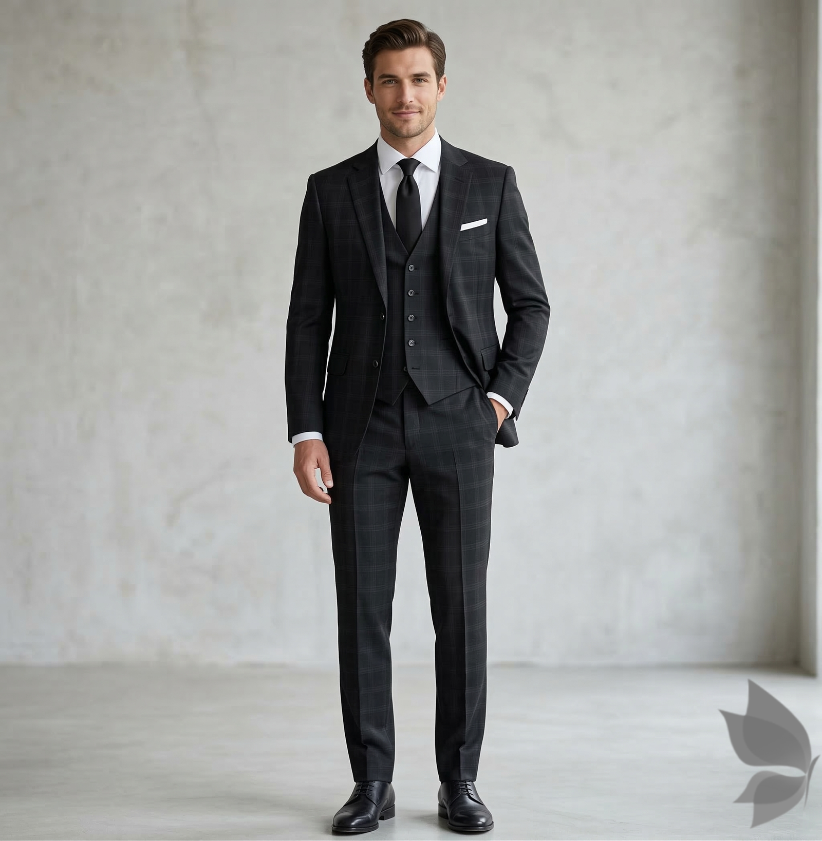 Raymond "Excellence" collection with 45% Australian merino wool with easy care Black colour Checkered pattern unstitched suit fabric of 3.5 Mts / VV2700