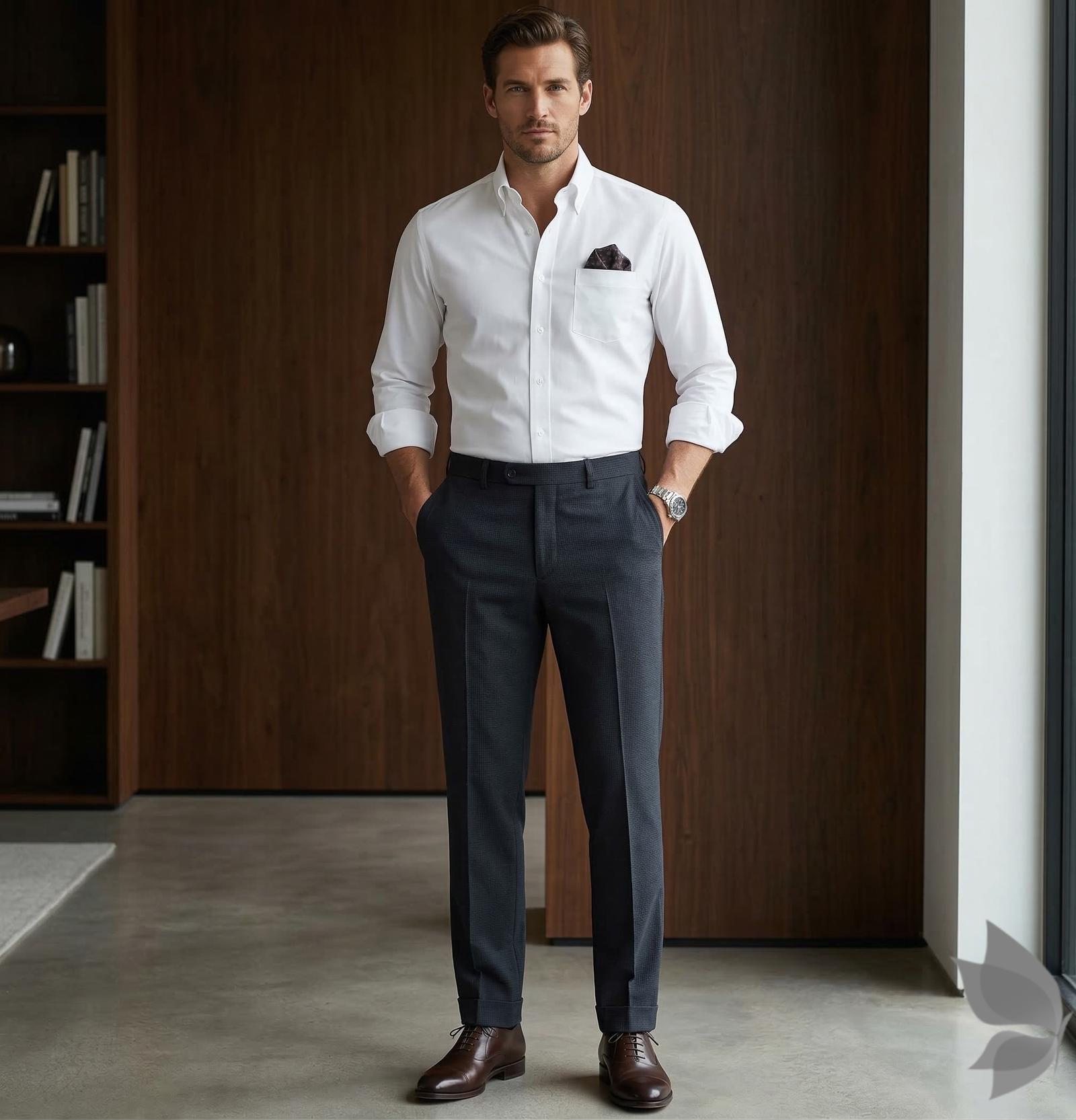 Our fabric range includes pure fabrics in cotton, wool, or linen. We stock different fabrics: From a dobby construction, twill, end-to-end, broadcloth, chambray, denim, Oxford, etc.