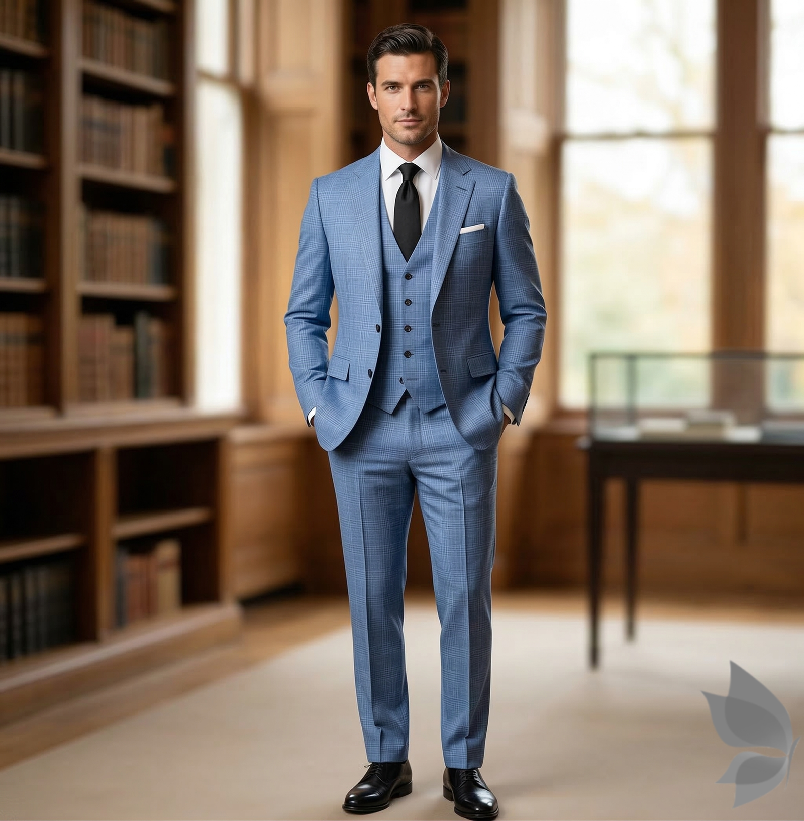 Raymond Luxurious fabrics with Super 120's Wool count & made with 70% wool "Luxolite" Collection Blue colour Checkered Unstitched Suit Fabric of 3.5 Mts / VV2650
