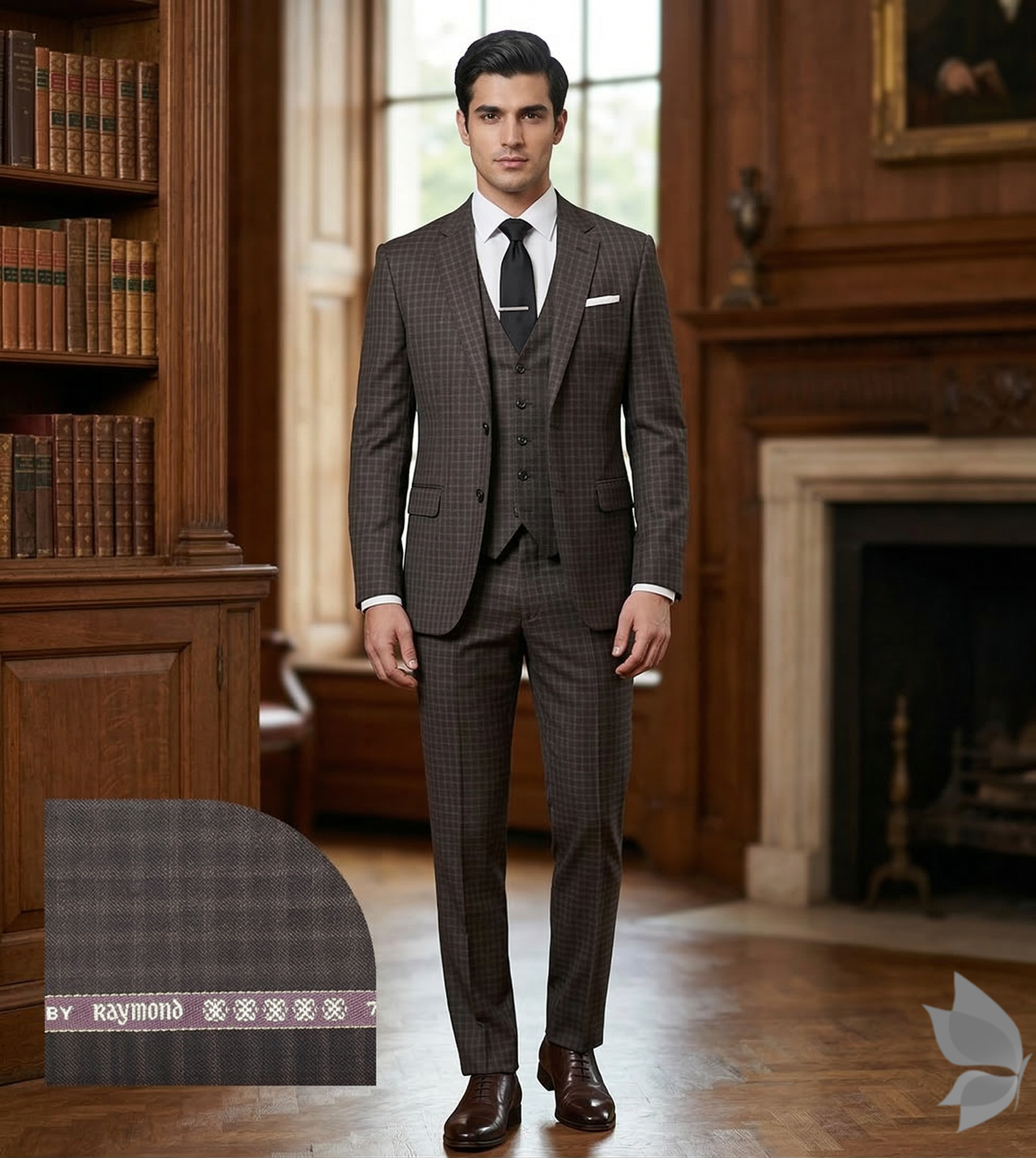 Raymond Luxurious fabrics with Super 120's Wool count & made with 70% wool "Luxolite" Collection Brown colour Checkered Unstitched Suit Fabric of 3.5 Mts / VV2644