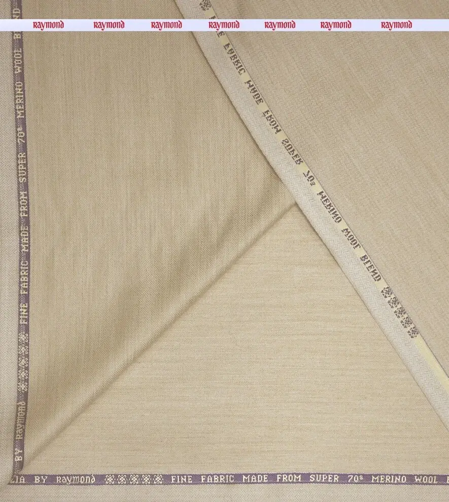 RAYMOND PATRIZIA COLLECTION SUPER 70'S PURE MERINO WOOL BEIGE COLOURED SELF DESIGN UNSTITCHED SUIT FABRIC -3.25 METRES / VV6699