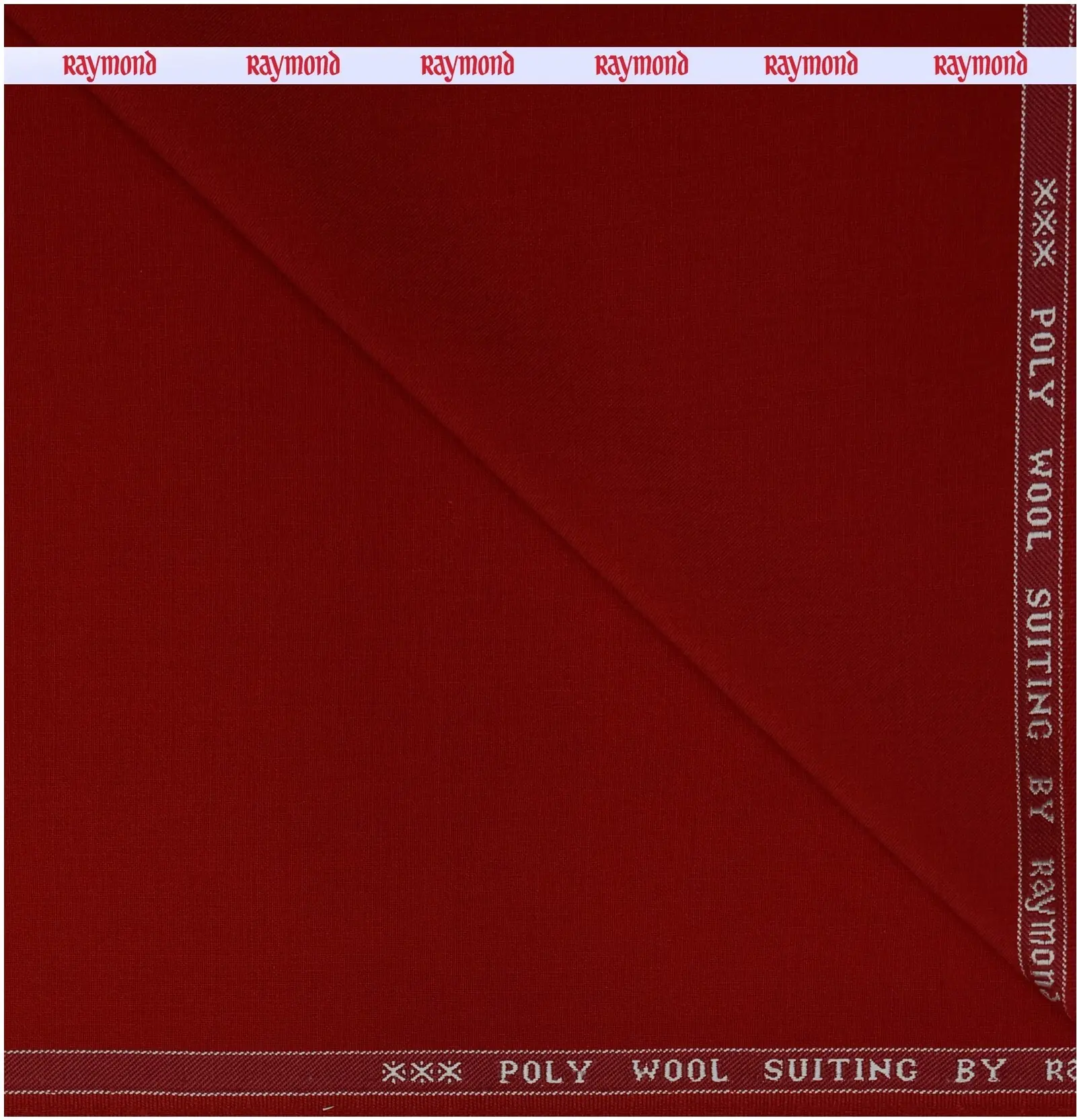 RAYMOND RED 45% WOOL BLENDED PLAIN UNSTITCHED SUIT FABRIC-3MTS - 4321 / VV7285