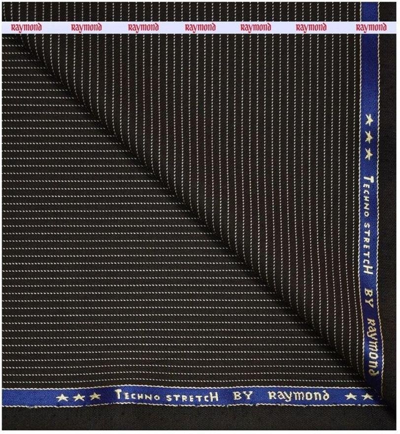RAYMOND TECHNO STRETCH BROWN STRIPED WITH HIGH PERFORMANCE FABRIC + EXCELLENT STRETCH + ANTI ODUR + MOISTURE MANAGEMENT + EASY CARE + SILKY TOUCH POLY BLENDED UNSTITCHED SUIT FABRIC - 3.50 METRES / VV5299 - 4321