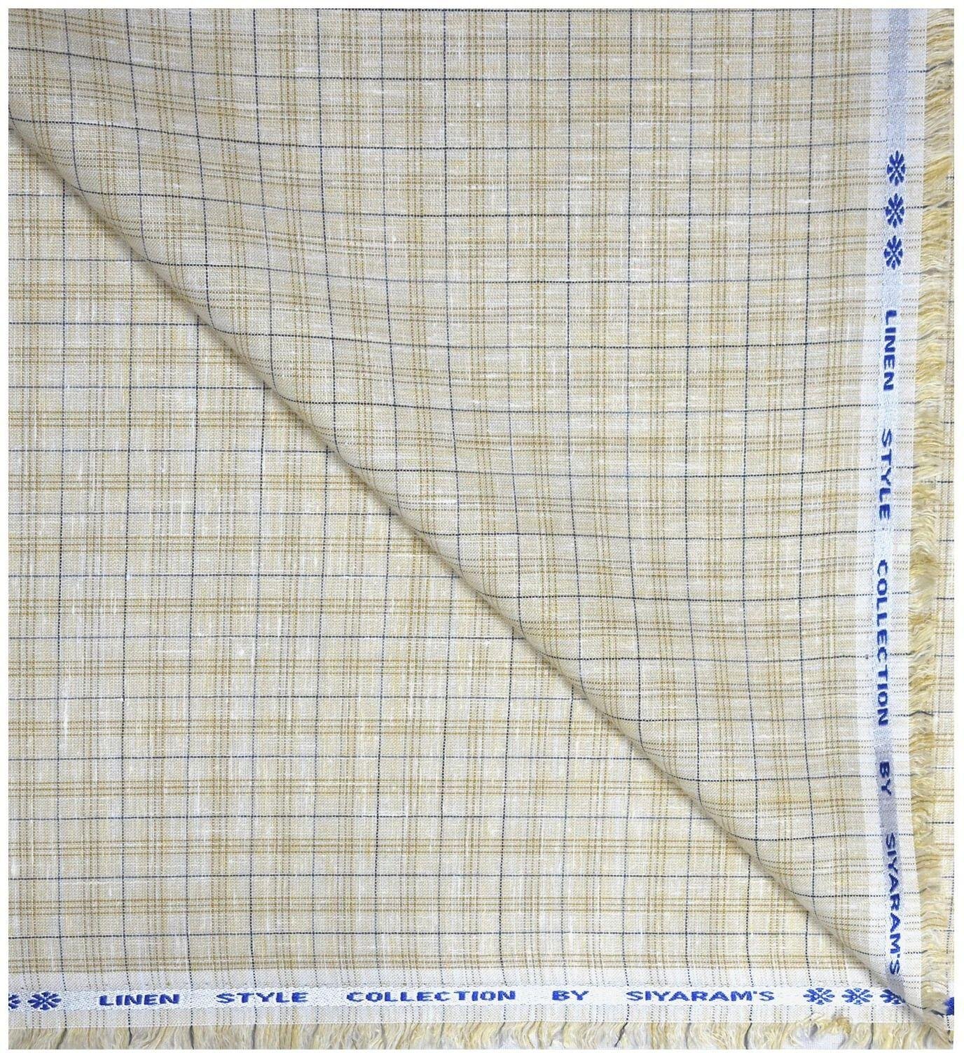 Siyaram's 100% Linen Cotton Beige Checkered Unstitched Shirt Fabric of 1.60 Mts / VV1180