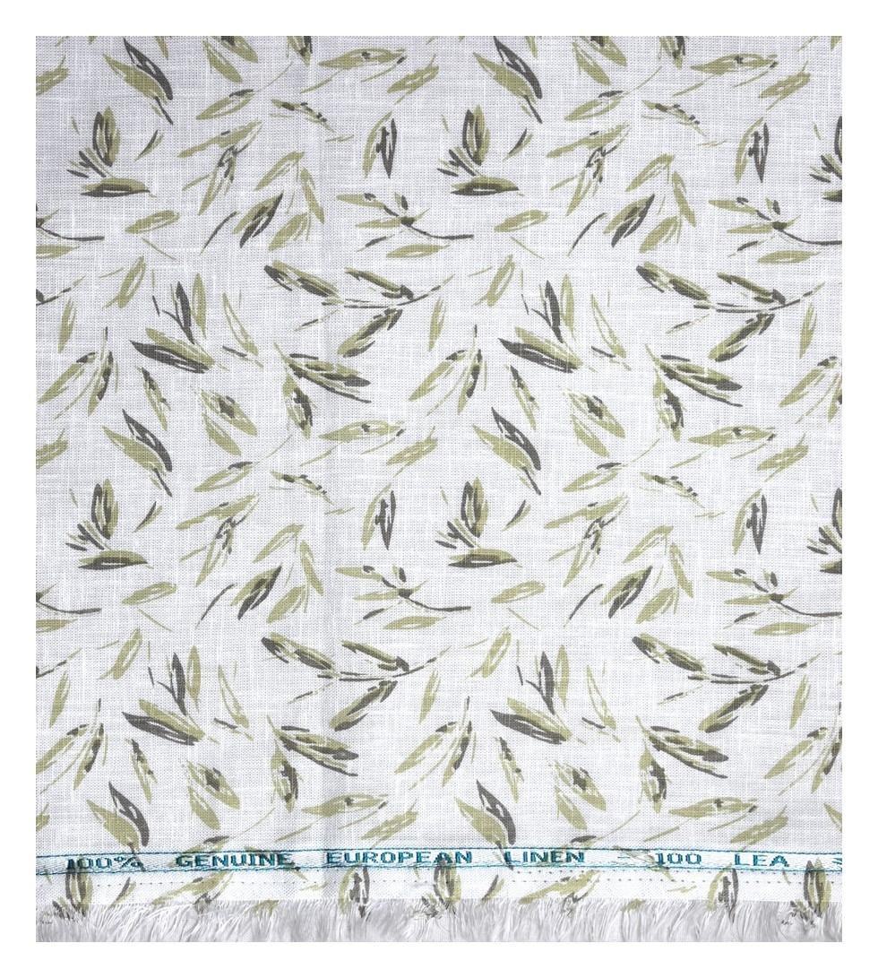 Weaves Empire 100% Genuine European Linen with 100 LEA count Green colour Printed Unstitched Shirt Fabric - 1.60 Mts / VV2197
