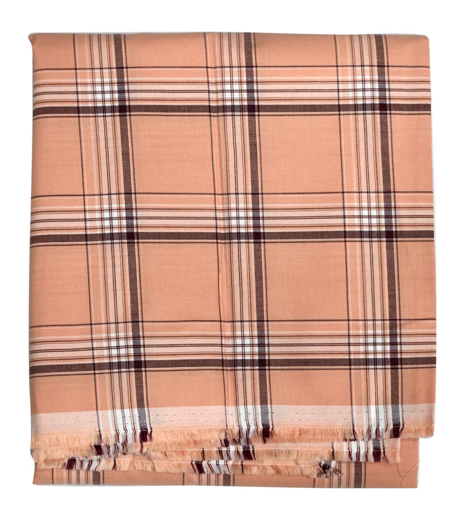 J. Hampstead Premium 100% Giza Cotton Peach Checkered Shirt Fabric 1.6 Mts / VV1185