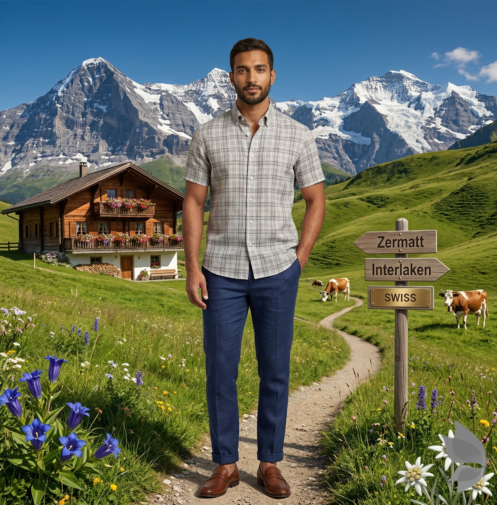 J.Hampstead Moretti Premium Collection with 100% Giza Cotton Grey (Tan) colour Checkered Pattern Unstitched Shirt Fabric of 1.6 mts - Made In Italy / VV2540