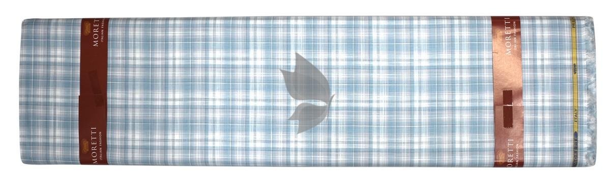 | J.Hampstead Moretti Premium Collection with 100% Giza Cotton Light Blue (Pale Blue) Checkered Pattern Unstitched Shirt Fabric of 1.6 mts - Made In Italy / VV2538 |