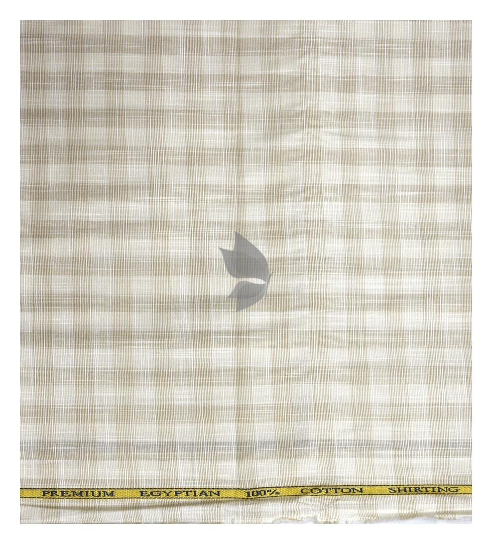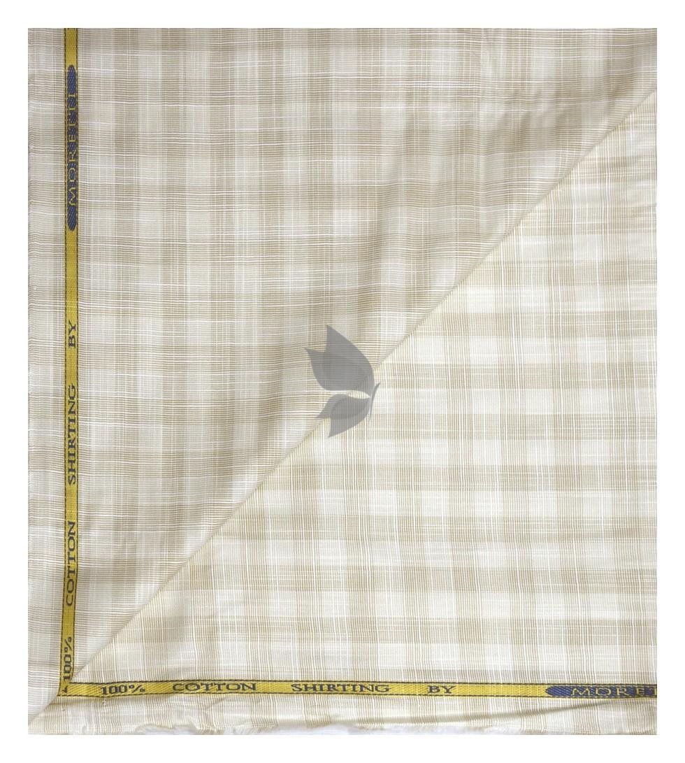 | J.Hampstead Moretti Premium Egyptian Collection with 100% Giza Cotton Beige Colour Checkered Pattern Unstitched Shirt Fabric of 1.6 mts - Made In Italy / VV2428 |