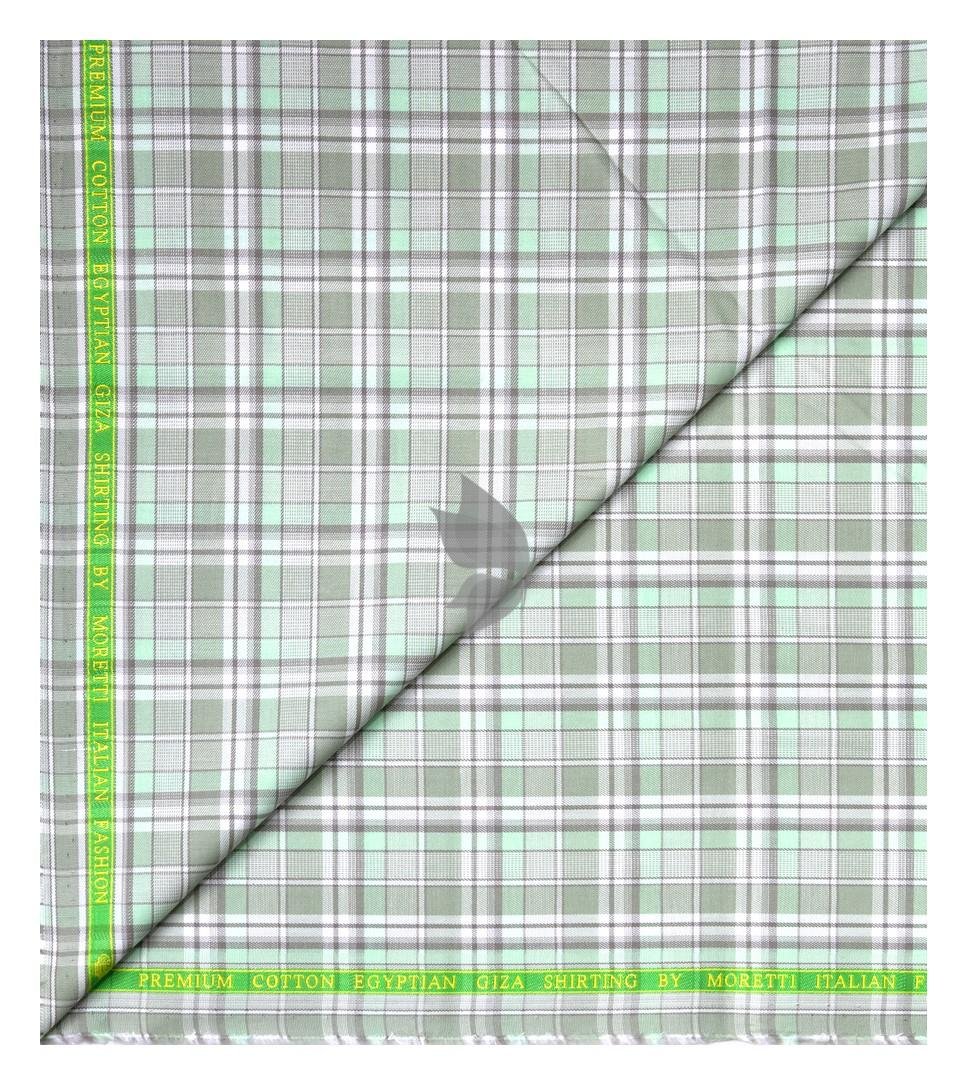 J.Hampstead Moretti Premium Egyptian Collection with 100% Giza Cotton Green (Celadon) Checkered Pattern Unstitched Shirt Fabric of 1.6 mts - Made In Italy / VV2391B