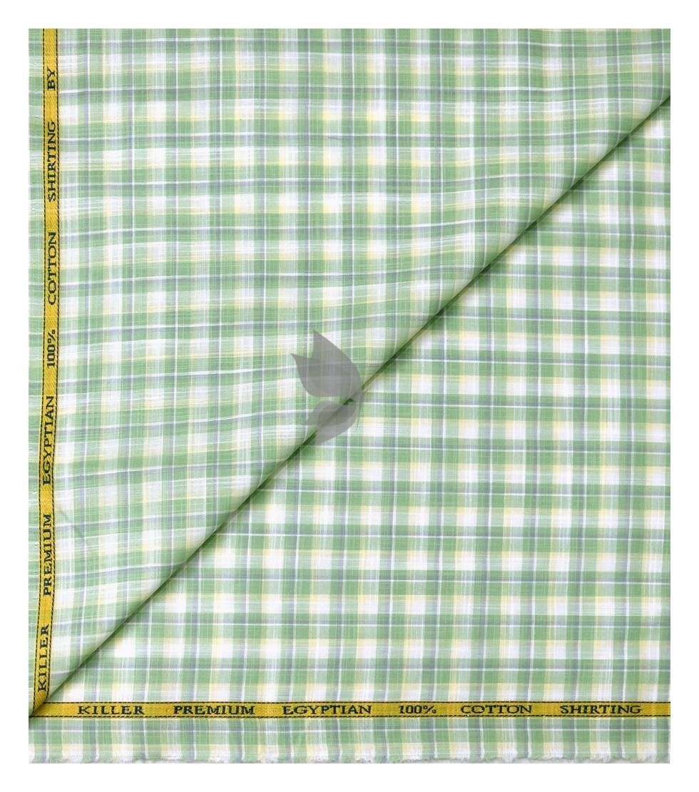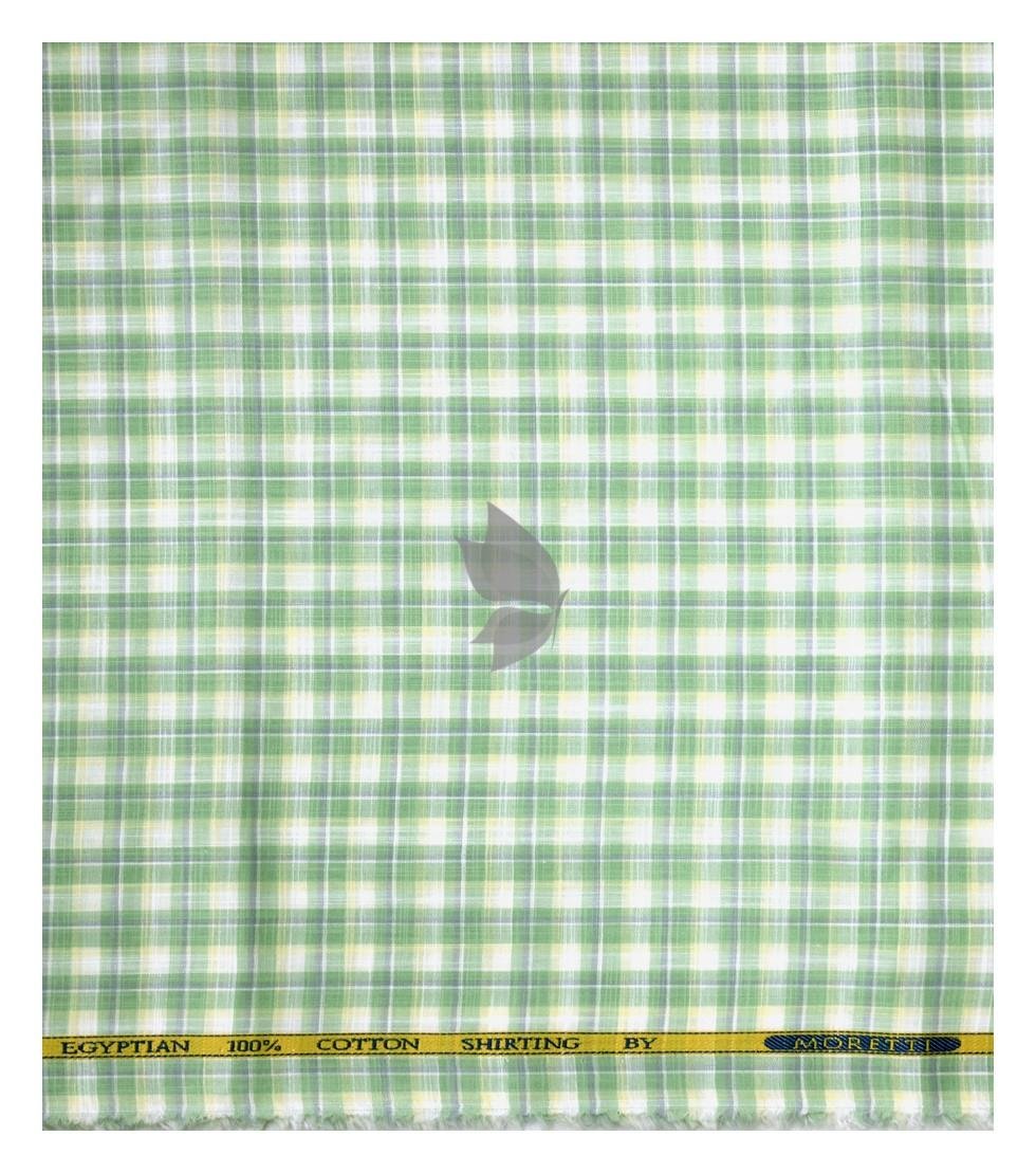 J.Hampstead Moretti Premium Egyptian Collection with 100% Giza Cotton Green Checkered Pattern Unstitched Shirt Fabric of 1.6 mts - Made In Italy / VV2763