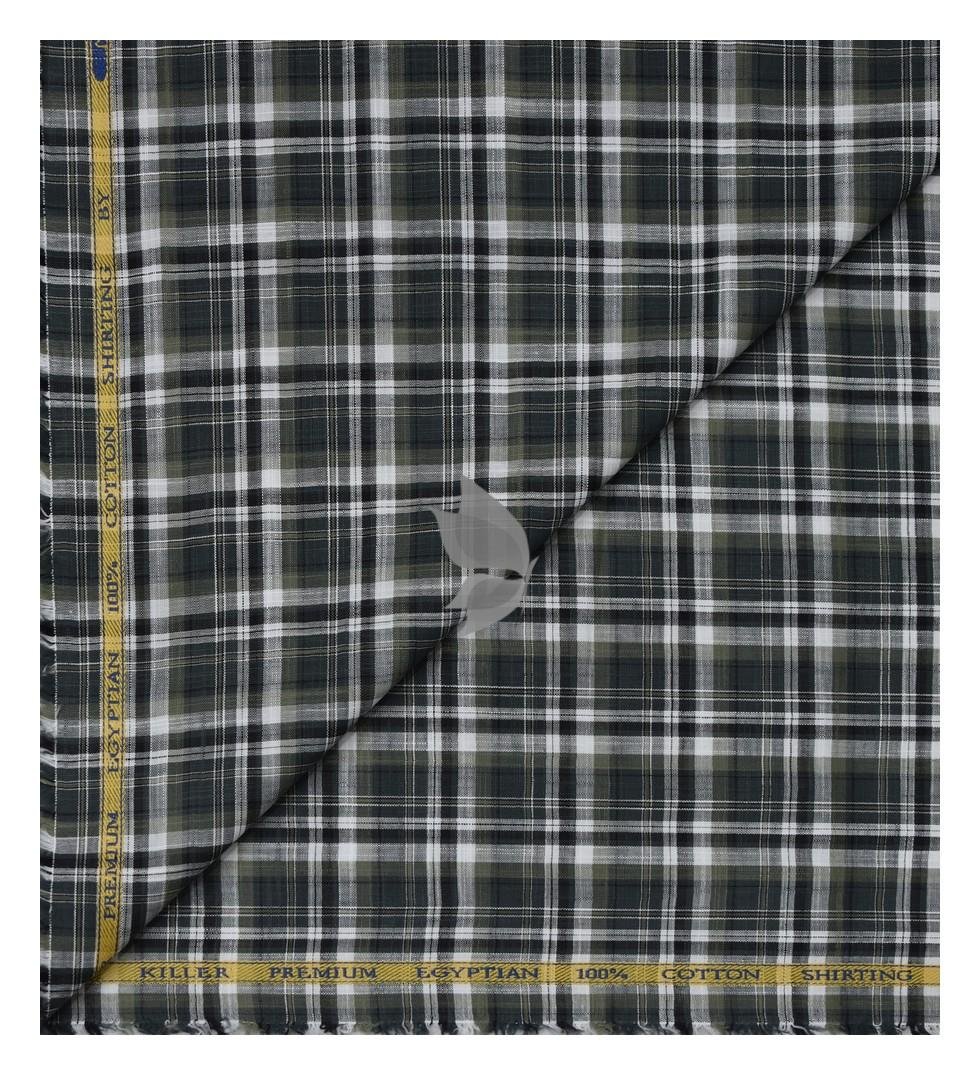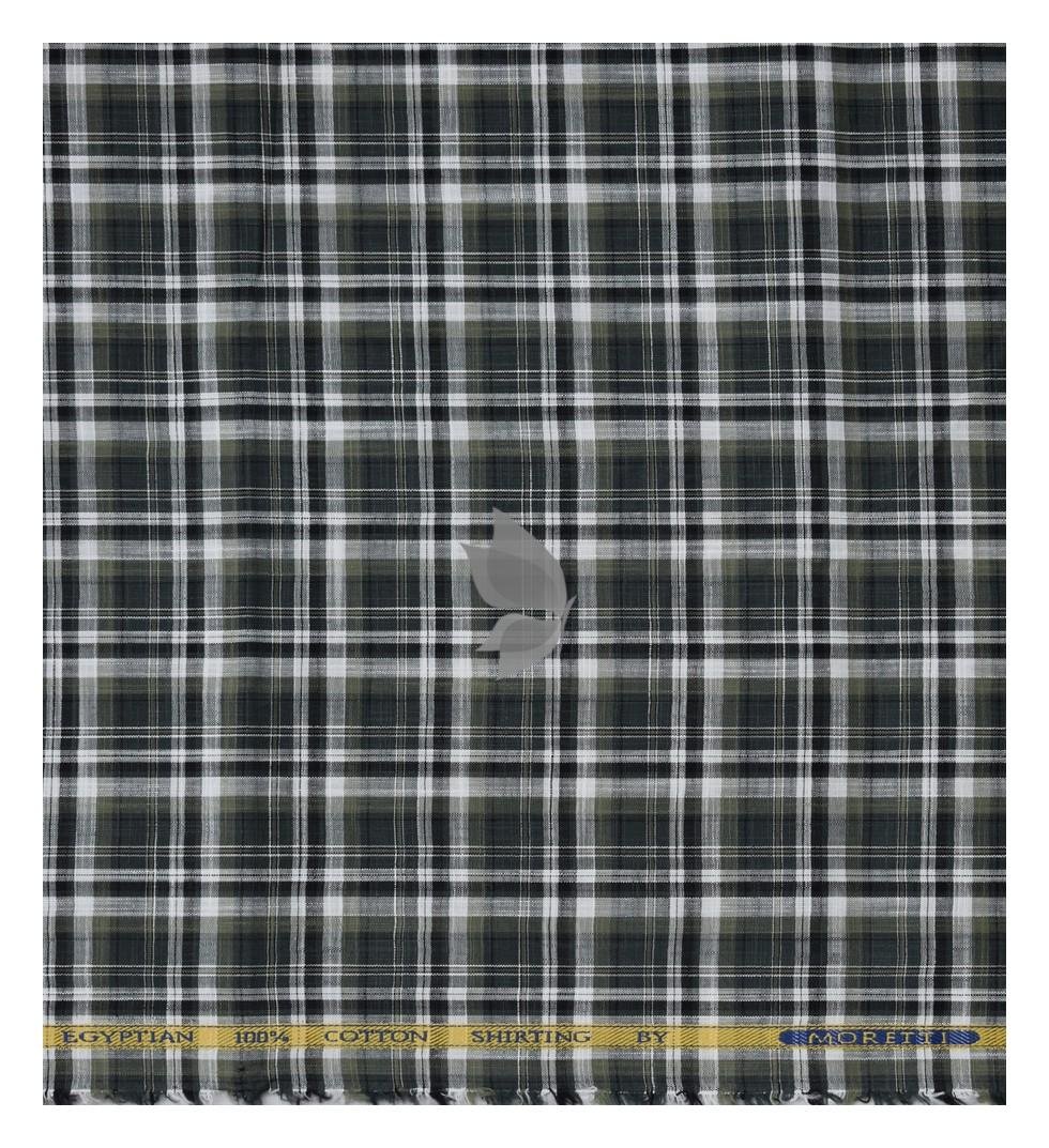 J.Hampstead Moretti Premium Egyptian Collection with 100% Giza Cotton Green Checkered Pattern Unstitched Shirt Fabric of 1.6 mts - Made In Italy / VV2764