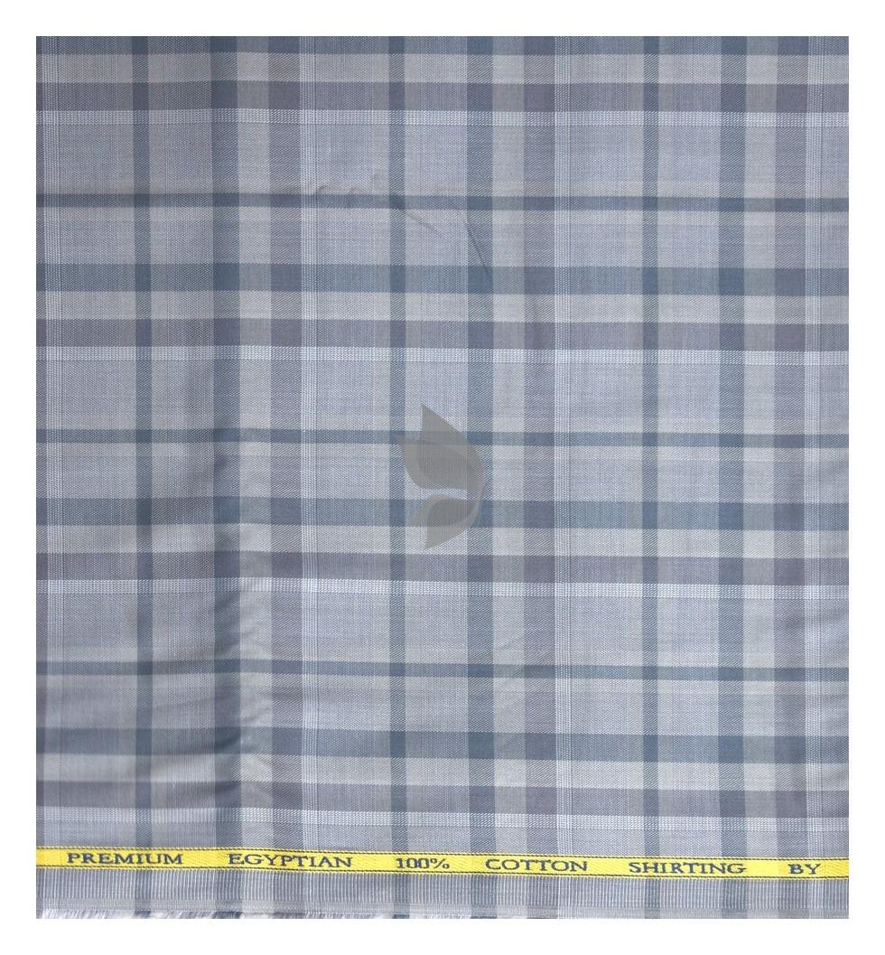 | J.Hampstead Moretti Premium Egyptian Collection with 100% Giza Cotton Grey Colour Checkered Pattern Unstitched Shirt Fabric of 1.6 mts - Made In Italy / VV2424 |