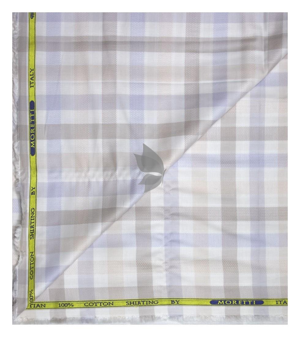 | J.Hampstead Moretti Premium Egyptian Collection with 100% Giza Cotton Multicolour Checkered Pattern Unstitched Shirt Fabric of 1.6 mts - Made In Italy / VV2427 |