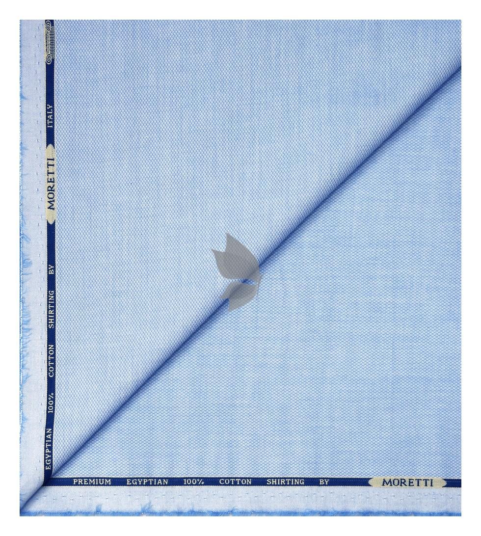 J.Hampstead Moretti Premium Egyptian Collection with 100% Giza Cotton Sky Blue Jacquard Pattern Unstitched Shirt Fabric of 1.6 mts - Made In Italy / VV2758