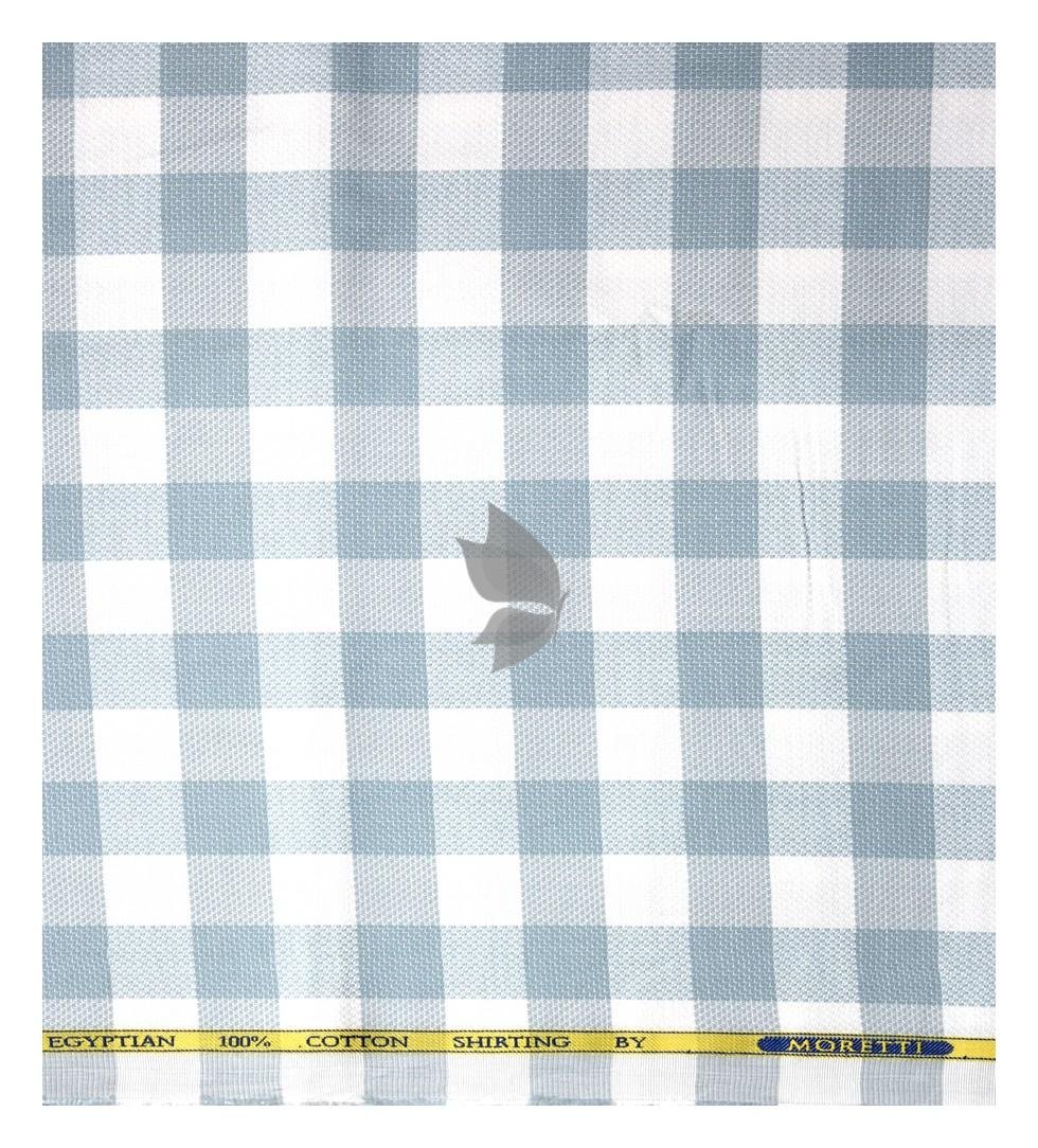 J.Hampstead Moretti Premium Egyptian Collection with 100% Giza Cotton White Checkered Pattern Unstitched Shirt Fabric of 1.6 mts - Made In Italy / VV2391A