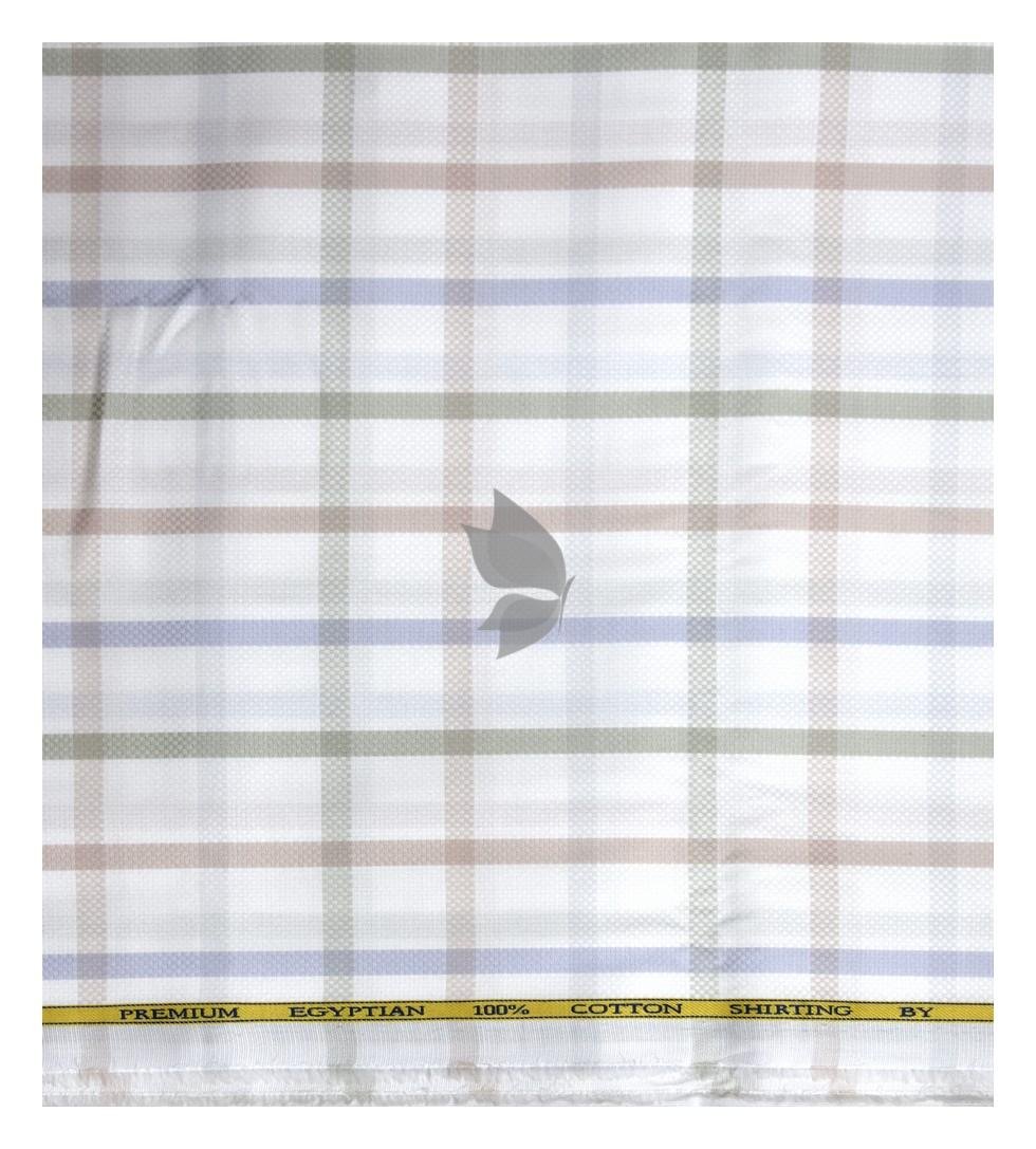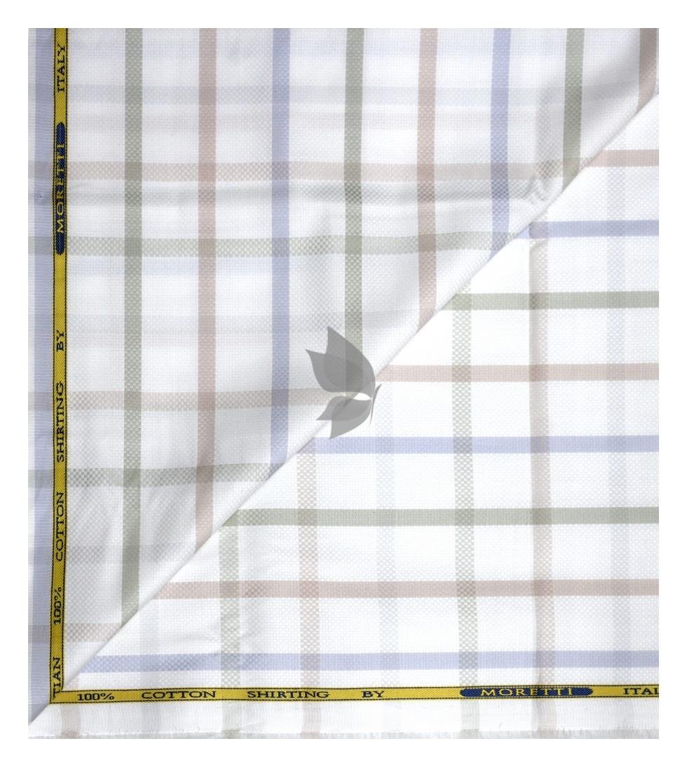 | J.Hampstead Moretti Premium Egyptian Collection with 100% Giza Cotton White Colour Checkered Pattern Unstitched Shirt Fabric of 1.6 mts - Made In Italy / VV2425 |