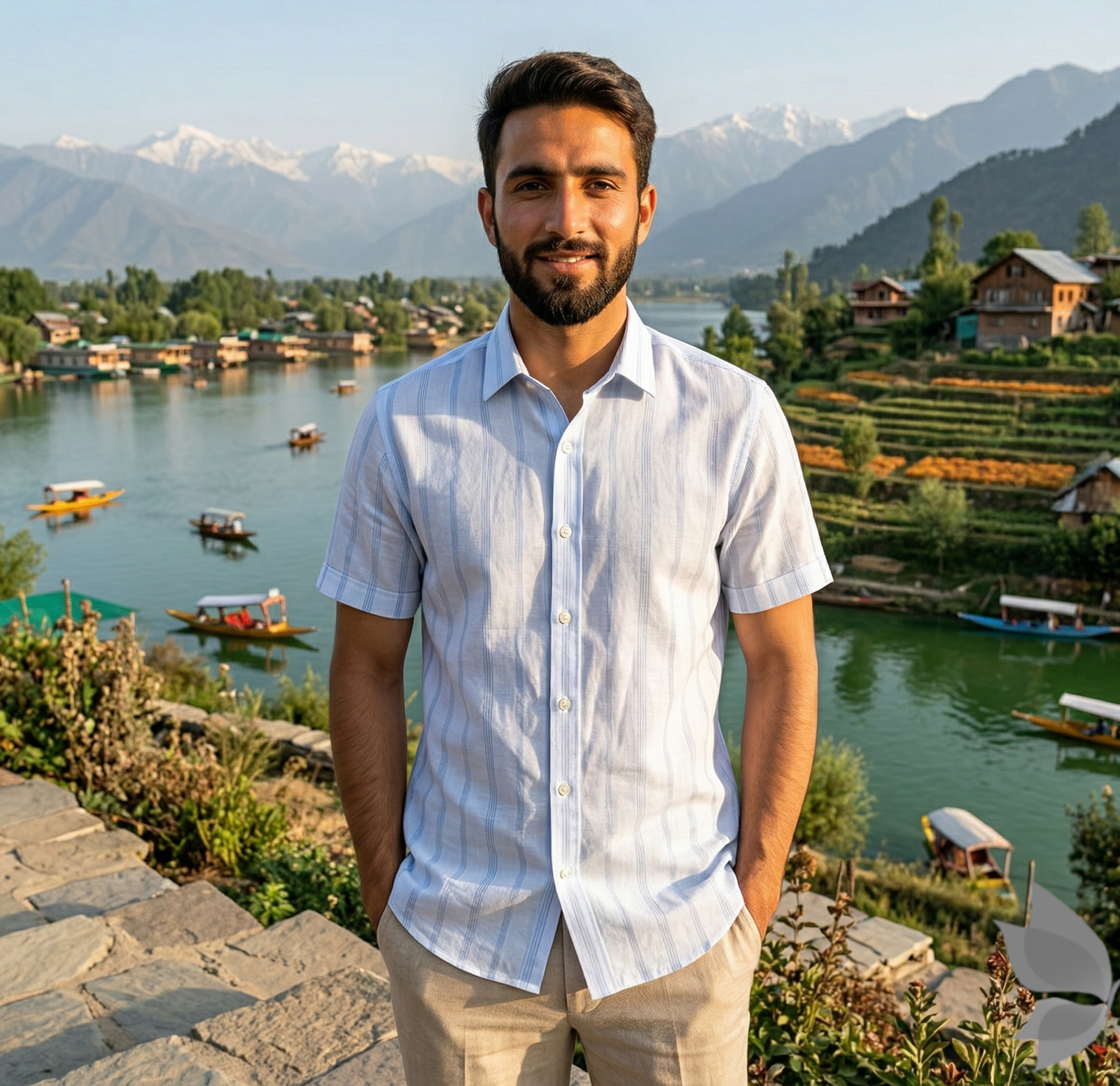 J.Hampstead Moretti Premium Egyptian Collection with 100% Giza Cotton White Colour Striped Pattern Unstitched Shirt Fabric of 1.6 mts - Made In Italy / VV2555