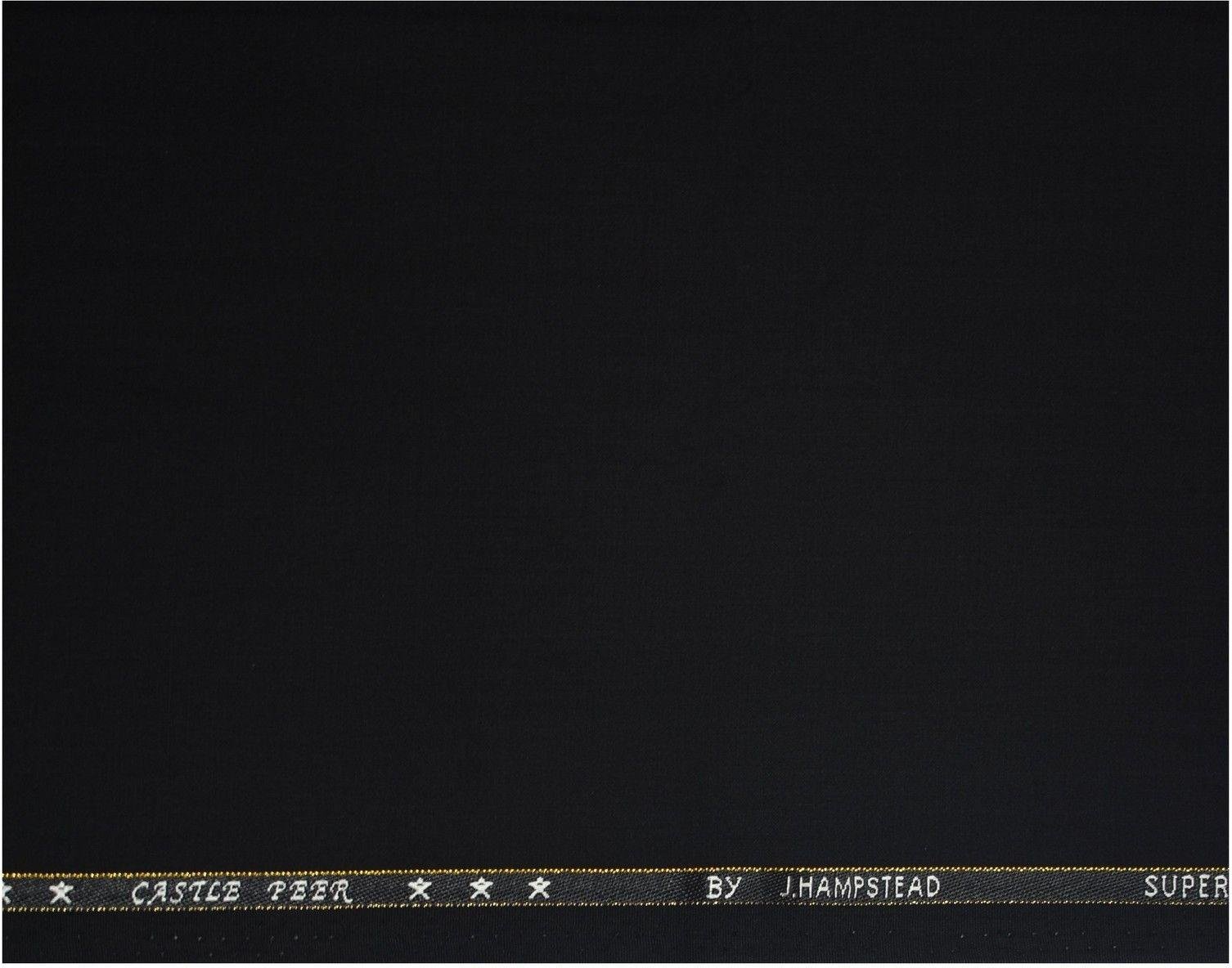 J.Hampstead Super 100's Wool Black Plain Unstitched Trouser Fabric of 1.25 Mts / VV7143