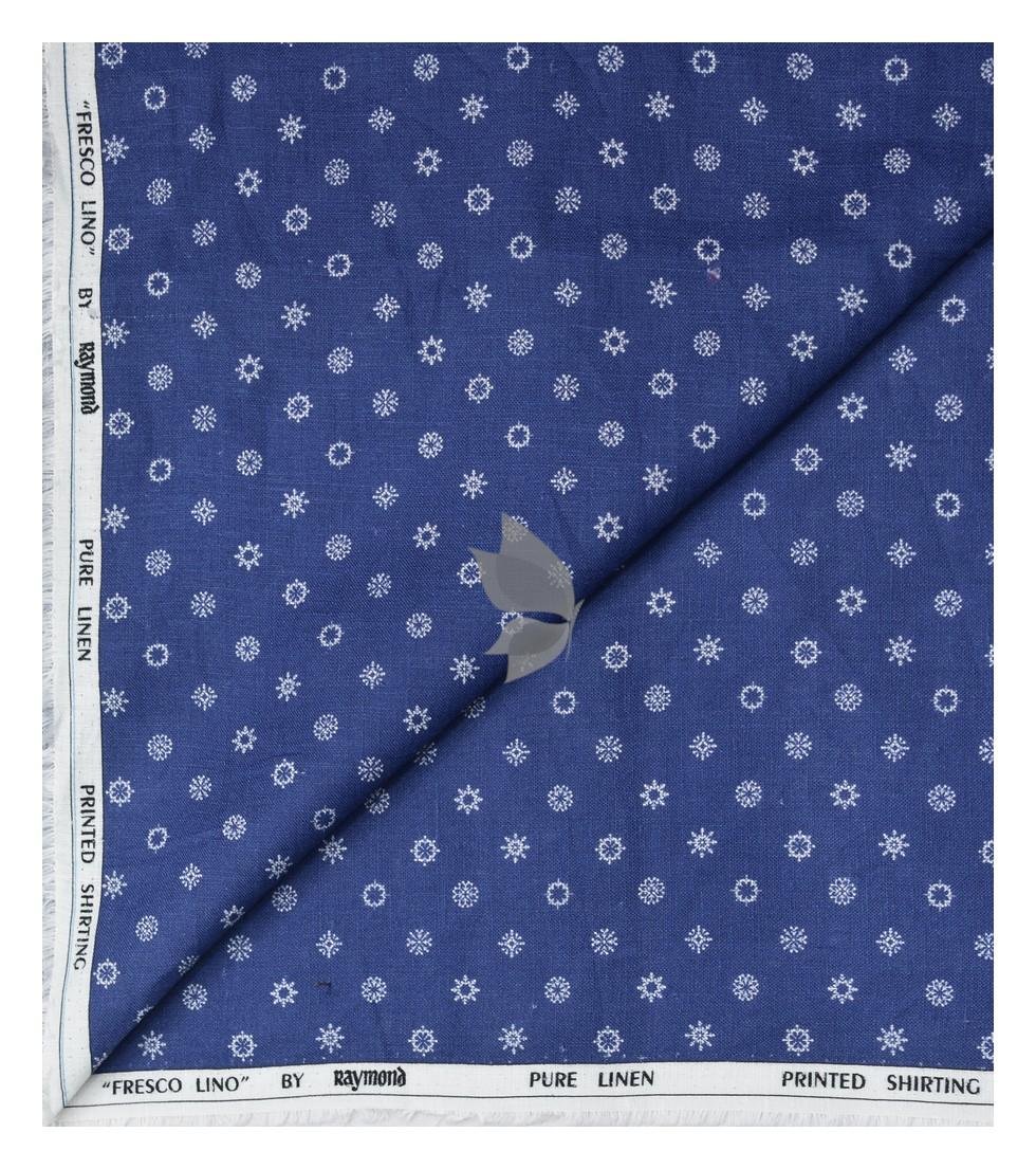 Raymond 100% Pure Linen Blue color Printed Unstitched Shirt Fabric of 1.6 meters / VV2389I