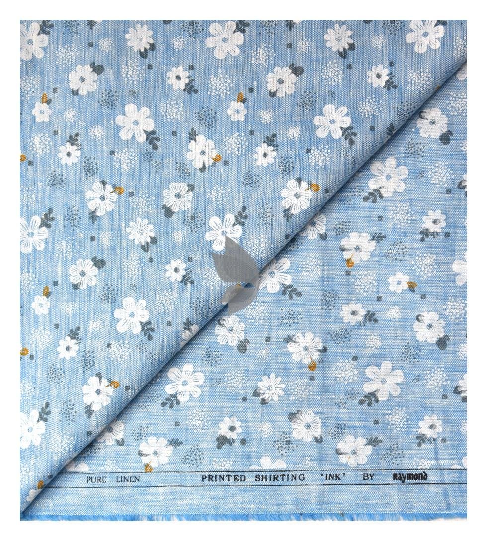 Raymond 100% Pure Linen Light Blue color Printed Unstitched Shirt Fabric of 1.6 meters / VV2389K