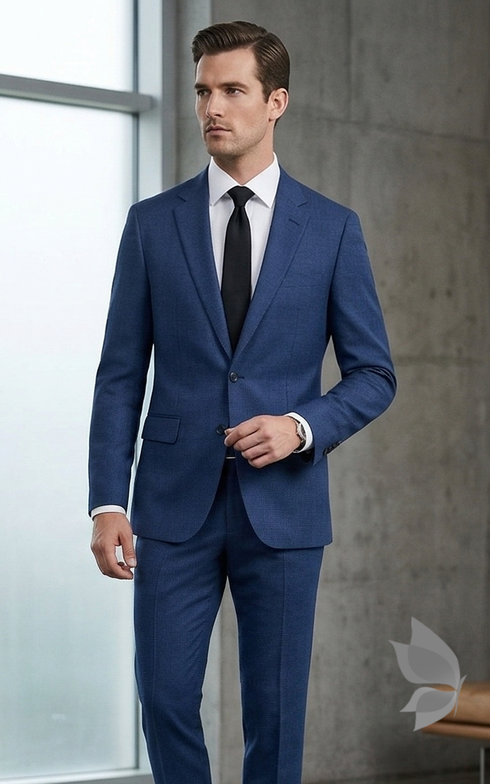 Raymond 100% Pure Wool (All Wool) Jacquard Blue Color Unstitched Suit Fabric - 3 Mts / VV2064