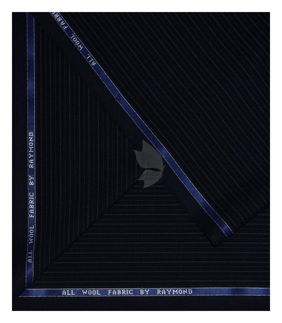 Raymond 100% Pure Wool (All Wool) Striped Navy Blue Color Unstitched Suit Fabric - 3.5 Mts / VV2085