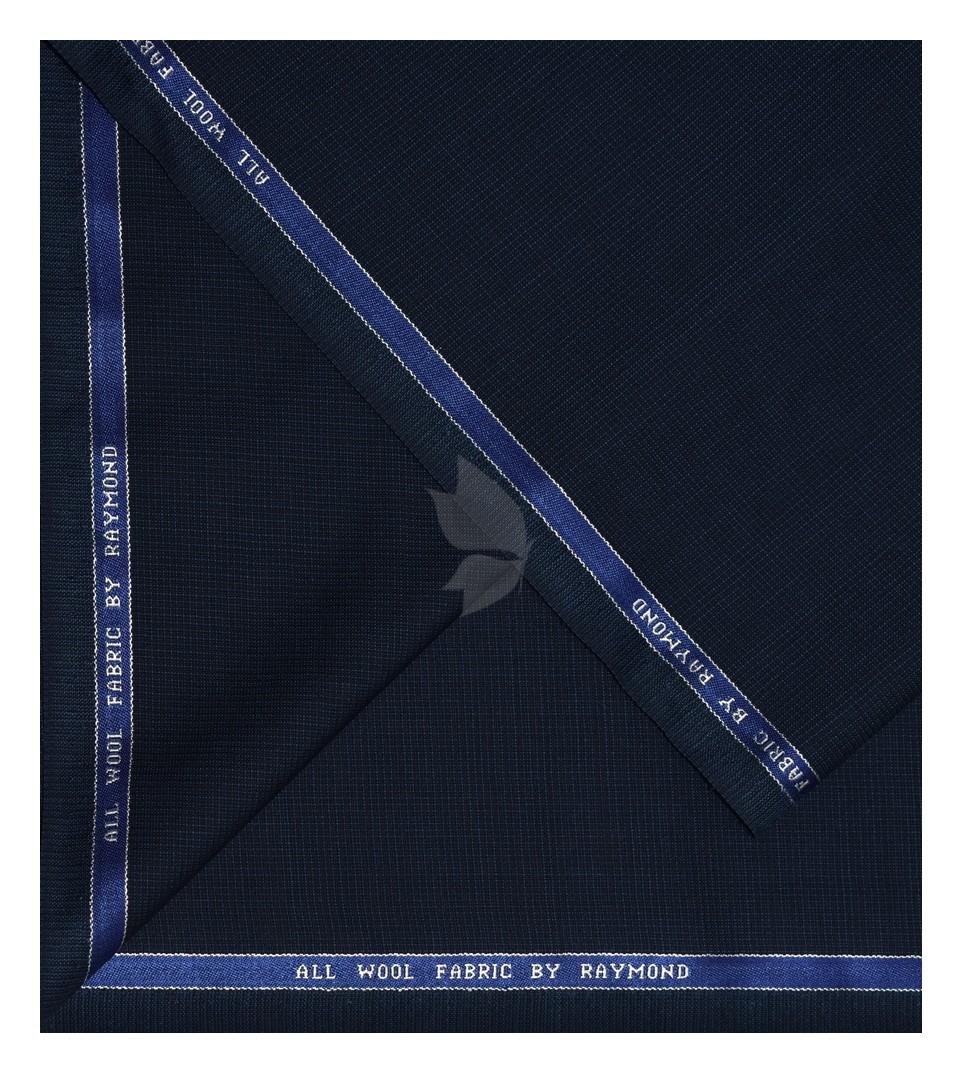 Raymond 100% Pure Wool (All Wool) Thick Blue Color Self Checkered Unstitched Suit Fabric - 3.5 Mts / VV2046