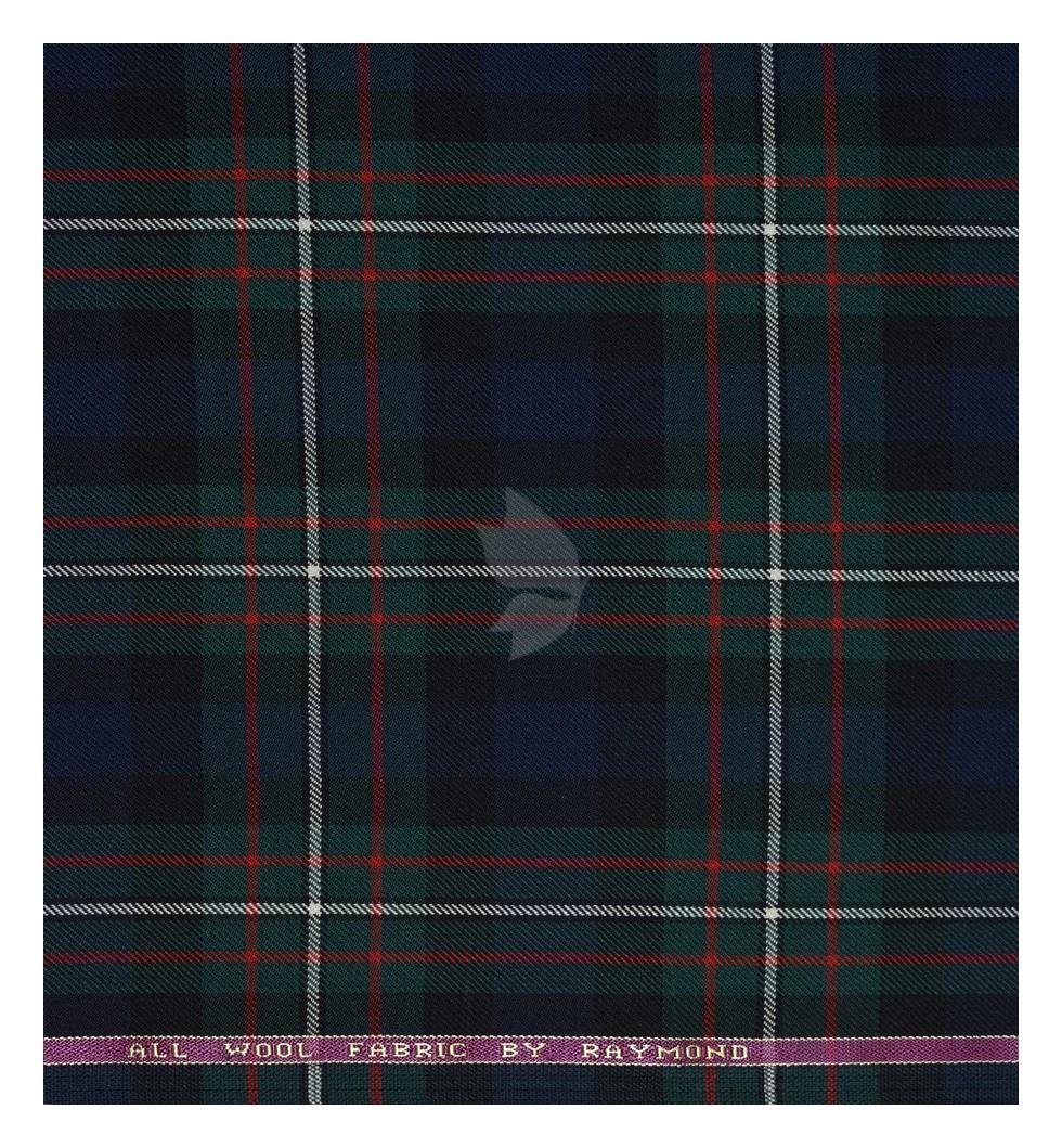 Raymond 100% Pure Wool (All Wool) Thick Green Broad Color Checkered Unstitched Suit Fabric - 3.5 Mts / VV2032