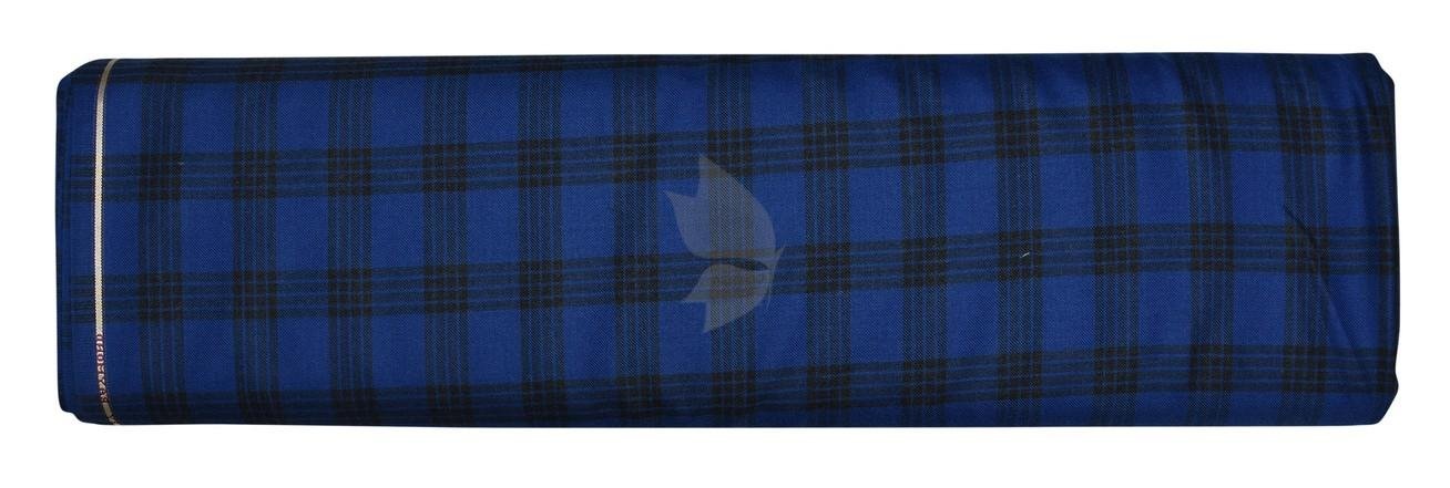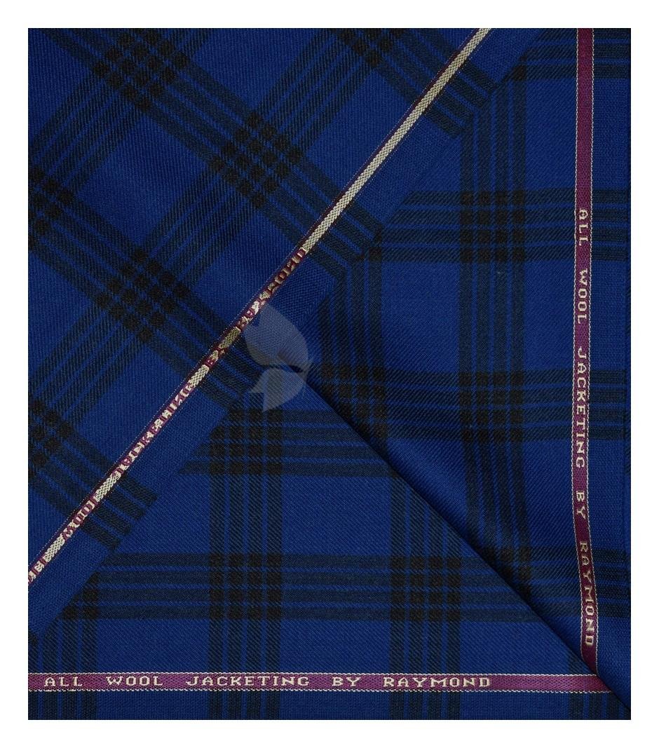 Raymond 100% Pure Wool (All Wool) Thick Royal Blue Color Checkered Unstitched Suit Fabric - 3 Mts / VV2052