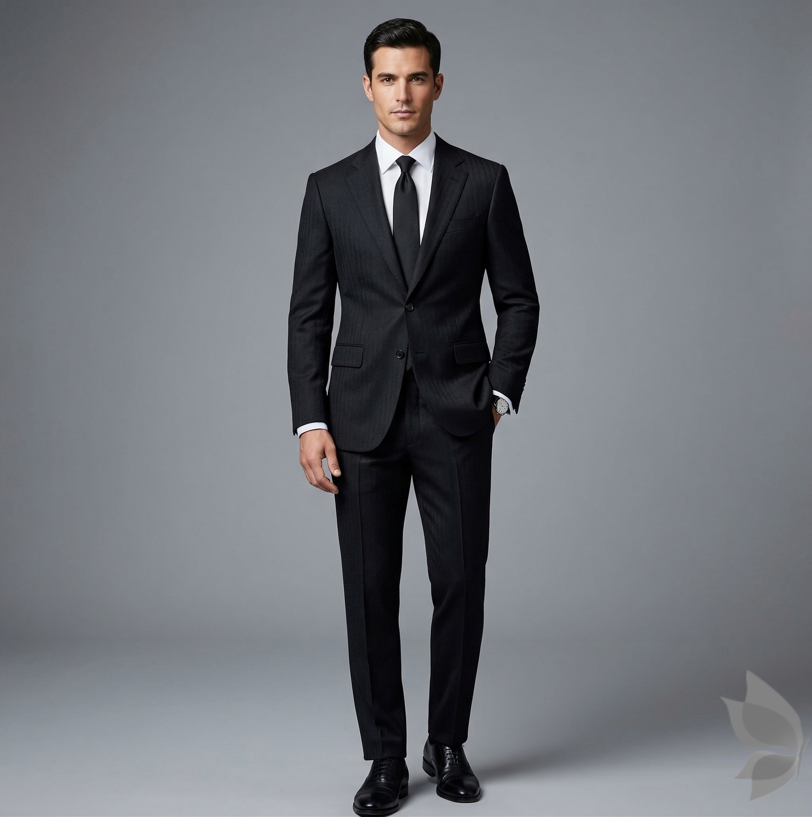Raymond 100% Pure Wool (All Wool) with GABARDINE Weaving Plain Black Color Unstitched Suit Fabric - 3 Mts / VV2119