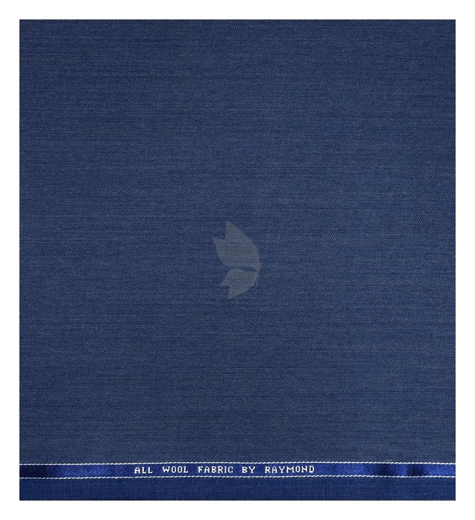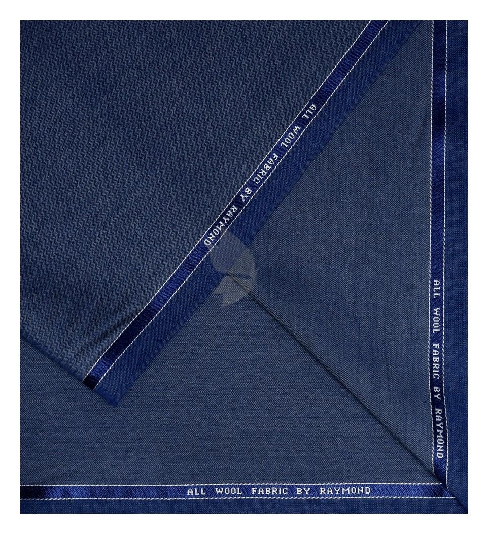 Raymond 100% Pure Wool (All Wool) with HERRINGBONE Weaving Plain Blue Color Unstitched Suit Fabric - 3 Mts / VV2102