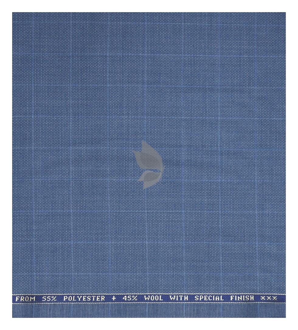 Raymond 45% Australian merino wool blended with Special Finish Checkered Pattern Blue colour Unstitched Trouser Fabric of 1.25 meters / VV2606