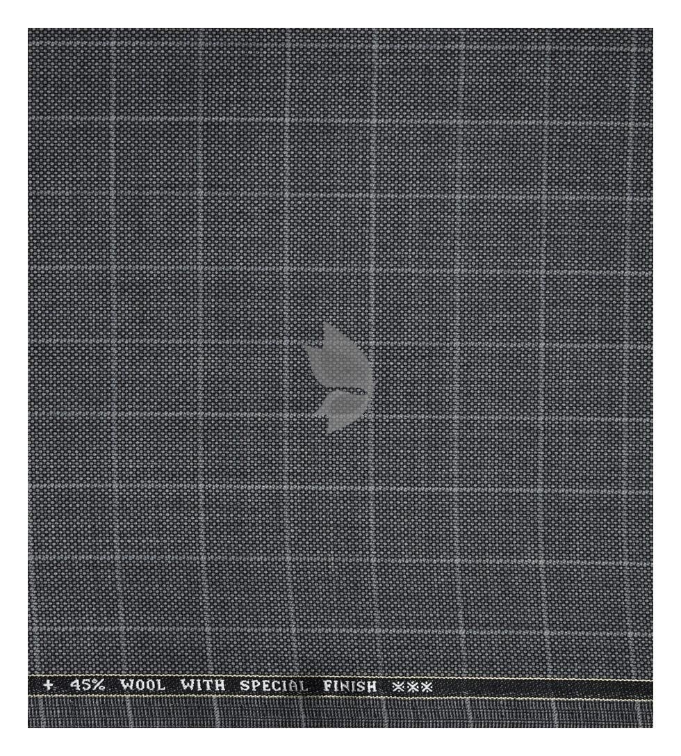 Raymond 45% Australian merino wool blended with Special Finish Checkered Pattern Grey colour Unstitched Suit Fabric of 3.5 meters / VV2605