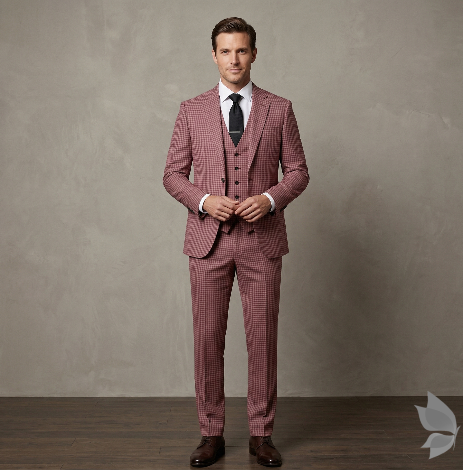 Raymond Amedus Peach checkered 52% Merino wool Suit fabric-3.25 mts / VV6804