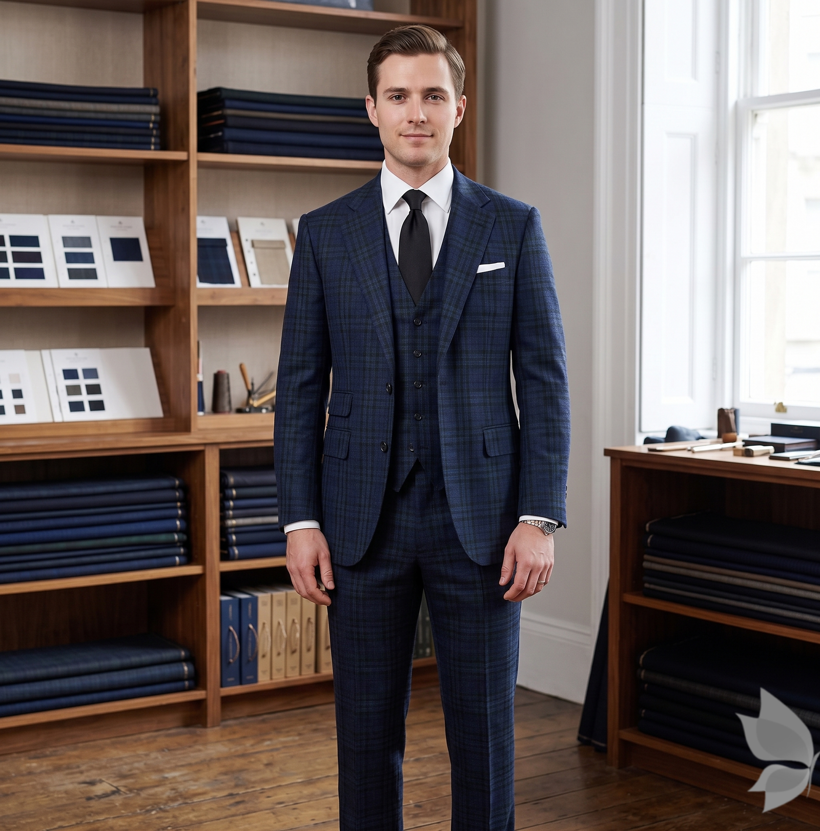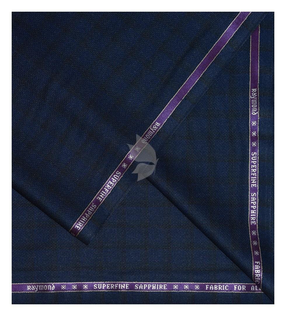 Raymond Australian Merino Wool blended Checkered pattern and Fabric for all Seasons Wear Navy Blue Colour Unstitched Suit Fabric of 3.5 Mts / VV2473