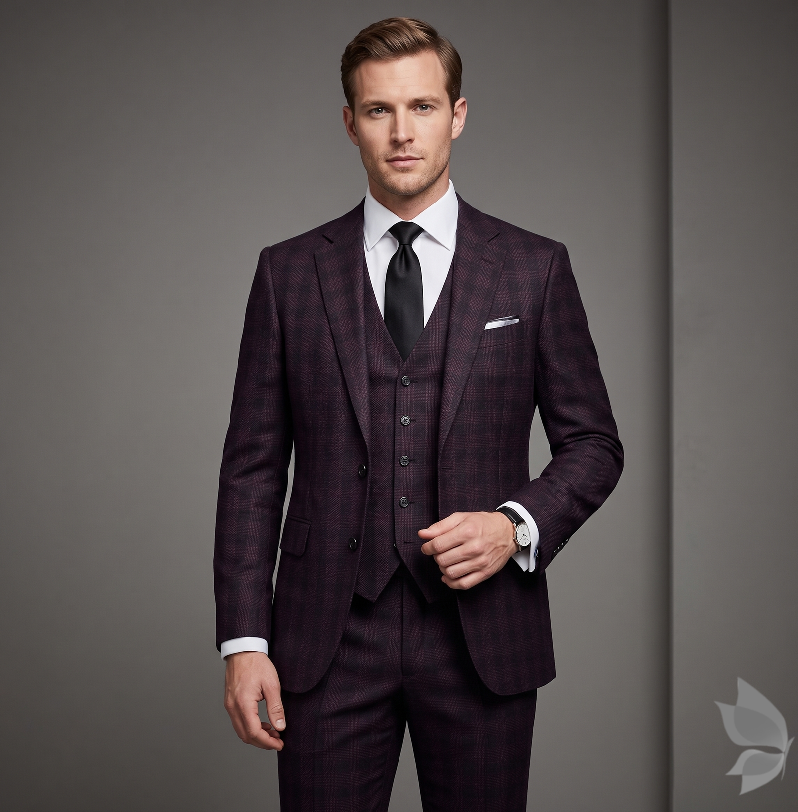 Raymond Australian Merino Wool blended Checkered pattern and Fabric for all Seasons Wear Purple (Rosewood) Colour Unstitched Suit Fabric of 3.5 Mts / VV2470