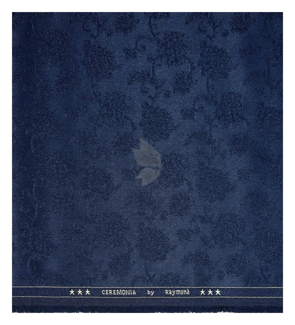 Raymond "CEREMONIA" Collection Wool Blended Navy Blue with Jacquard and Floral design Unstitched Sherwani (Kurta) Fabric - 2.5 Mts / VV2138
