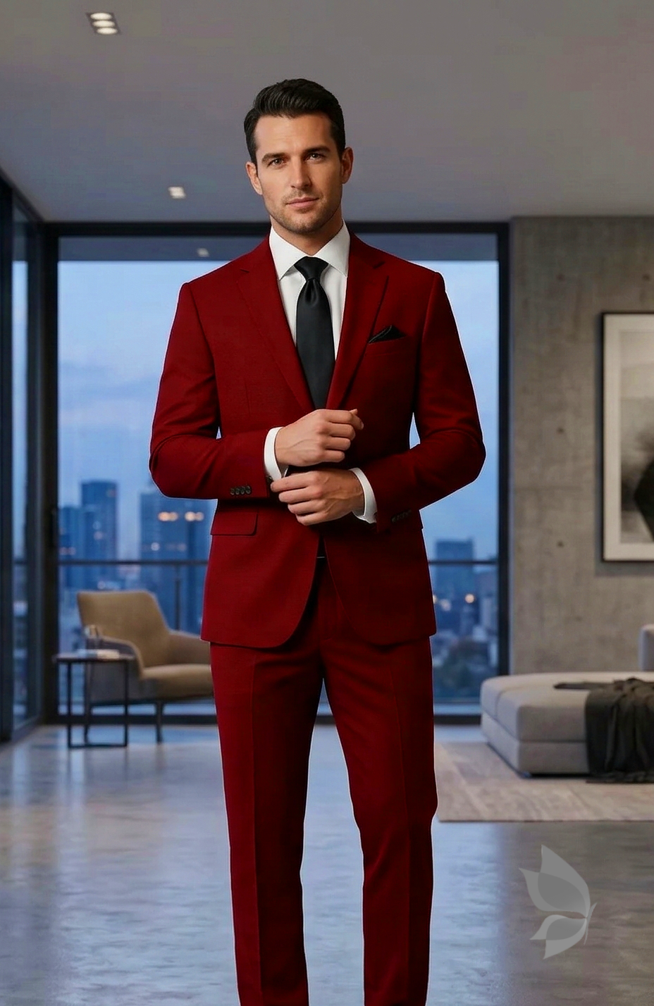 RAYMOND RED 45% WOOL BLENDED PLAIN UNSTITCHED SUIT FABRIC-3MTS - 4321 / VV7285
