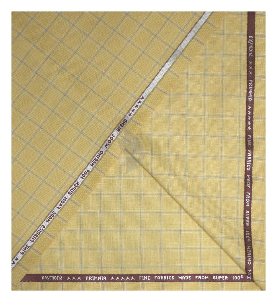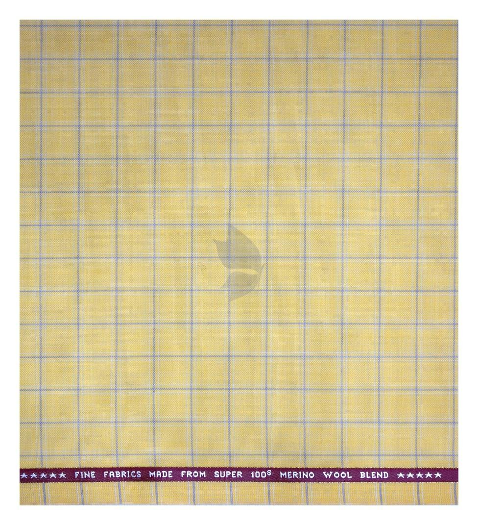 Raymond Super 100's Merino Wool Fine Fabric in Yellow colour with Blue and white Checkered Unstitched Suit Fabric - 3.25 meters / VV2150
